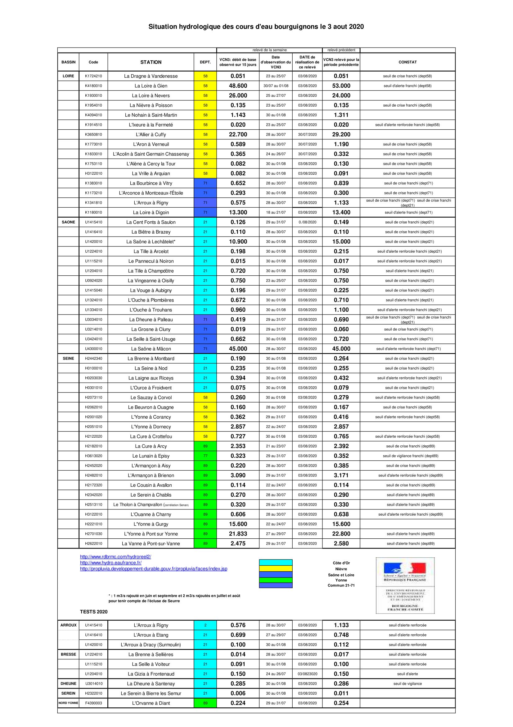 Bulletin Sécheresse BFC/Ouest 03-08-2020