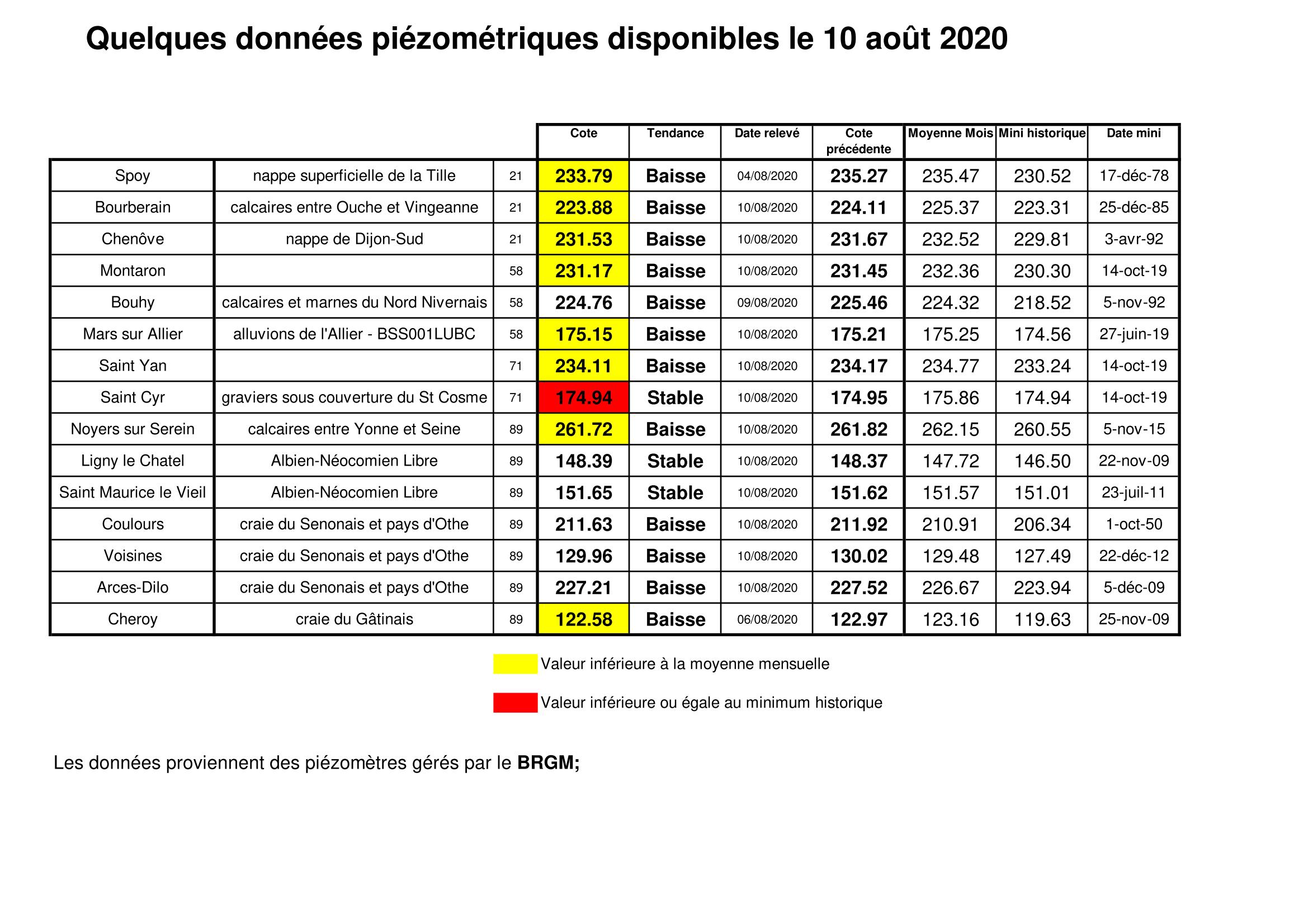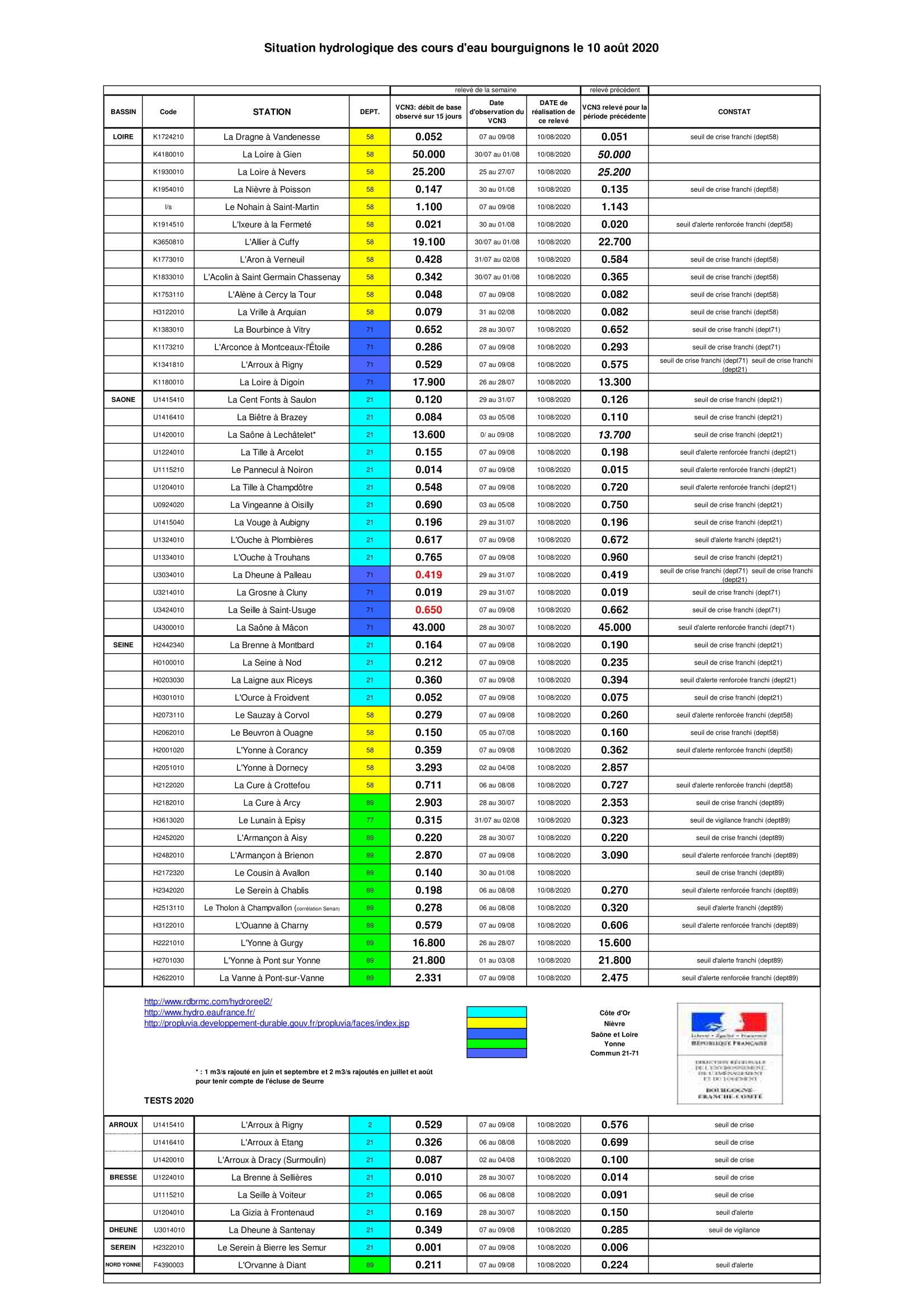Bulletin Sécheresse BFC/Ouest 10-08-2020