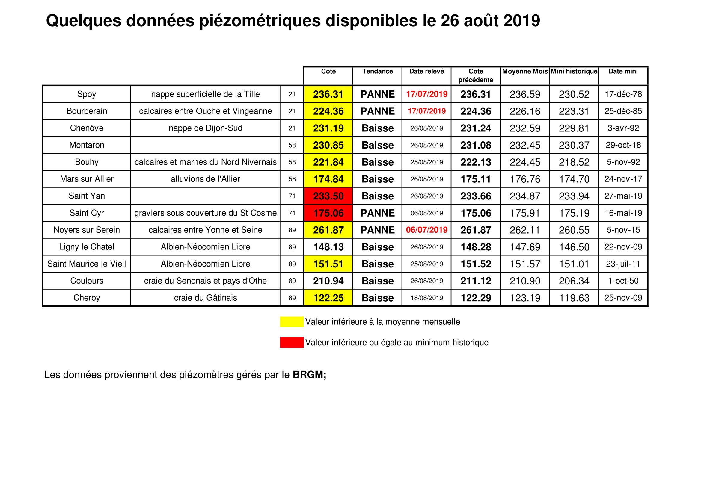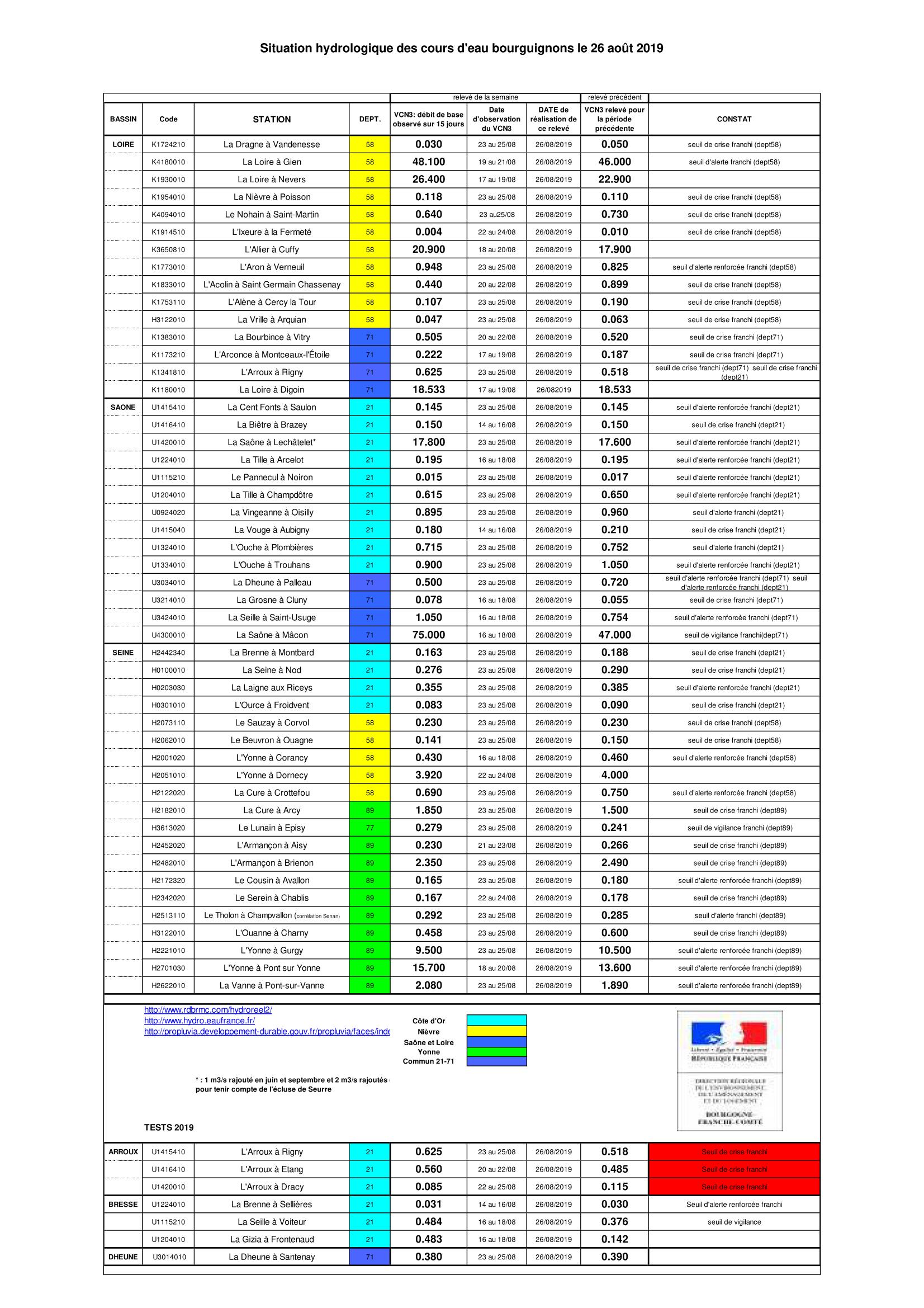 Bulletin Sécheresse BFC/Ouest 26-08-2019