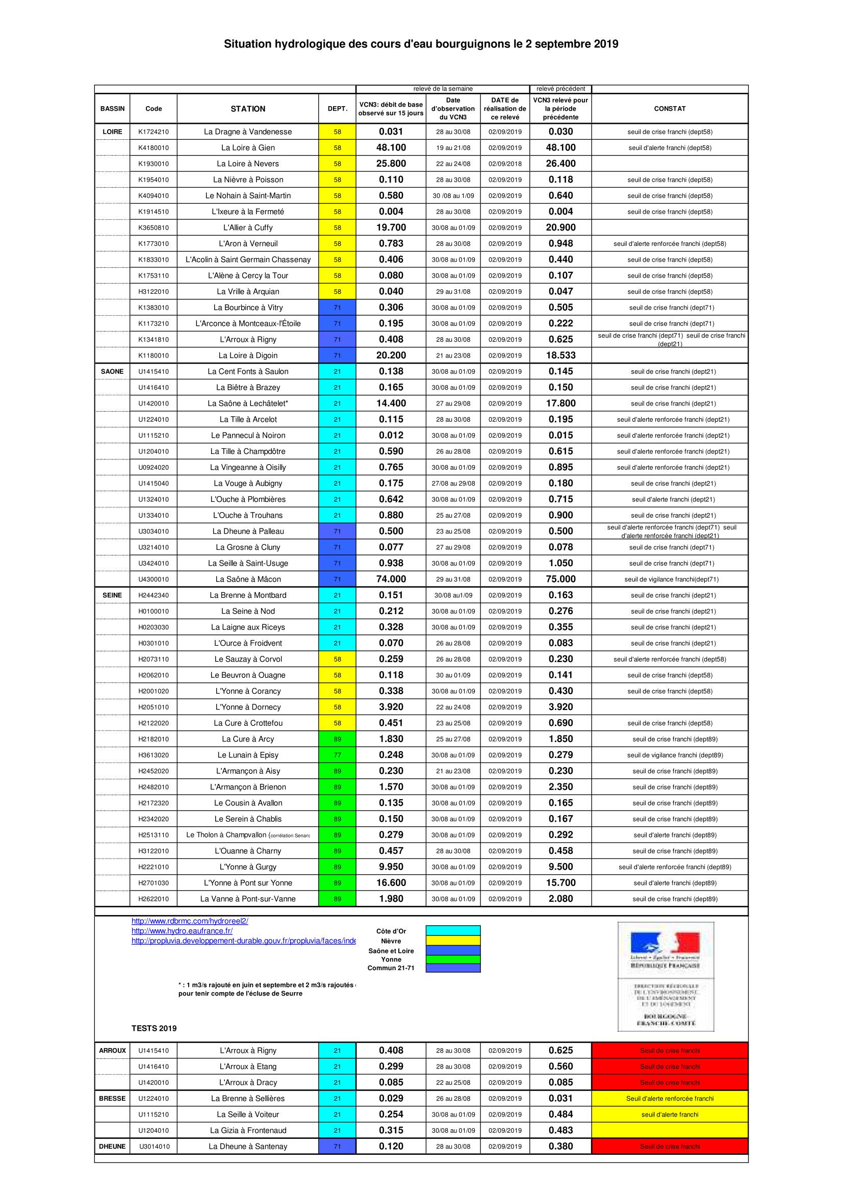 Bulletin Sécheresse BFC/Ouest 02-09-2019