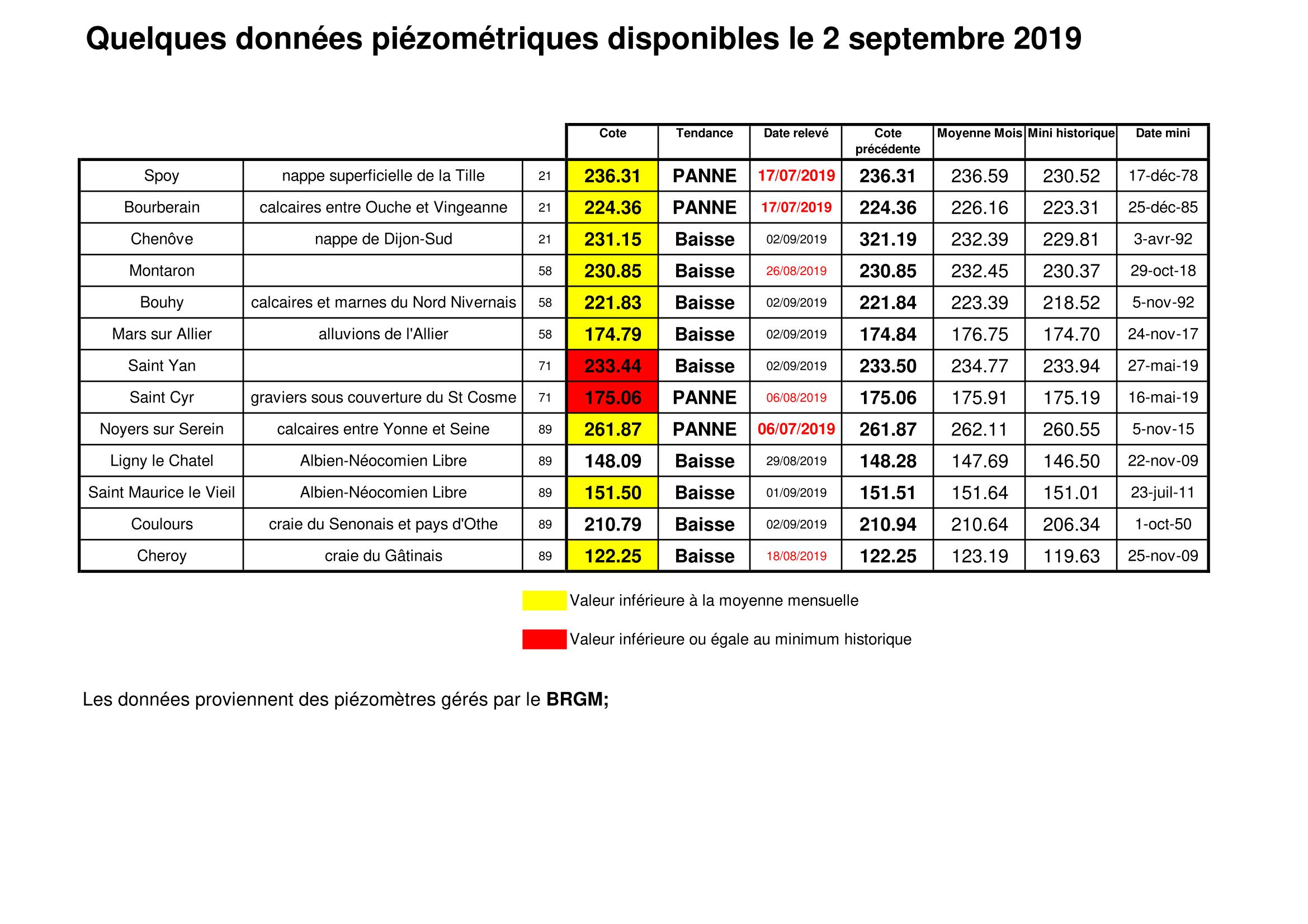 Bulletin Sécheresse BFC/Ouest 19-08-2019
