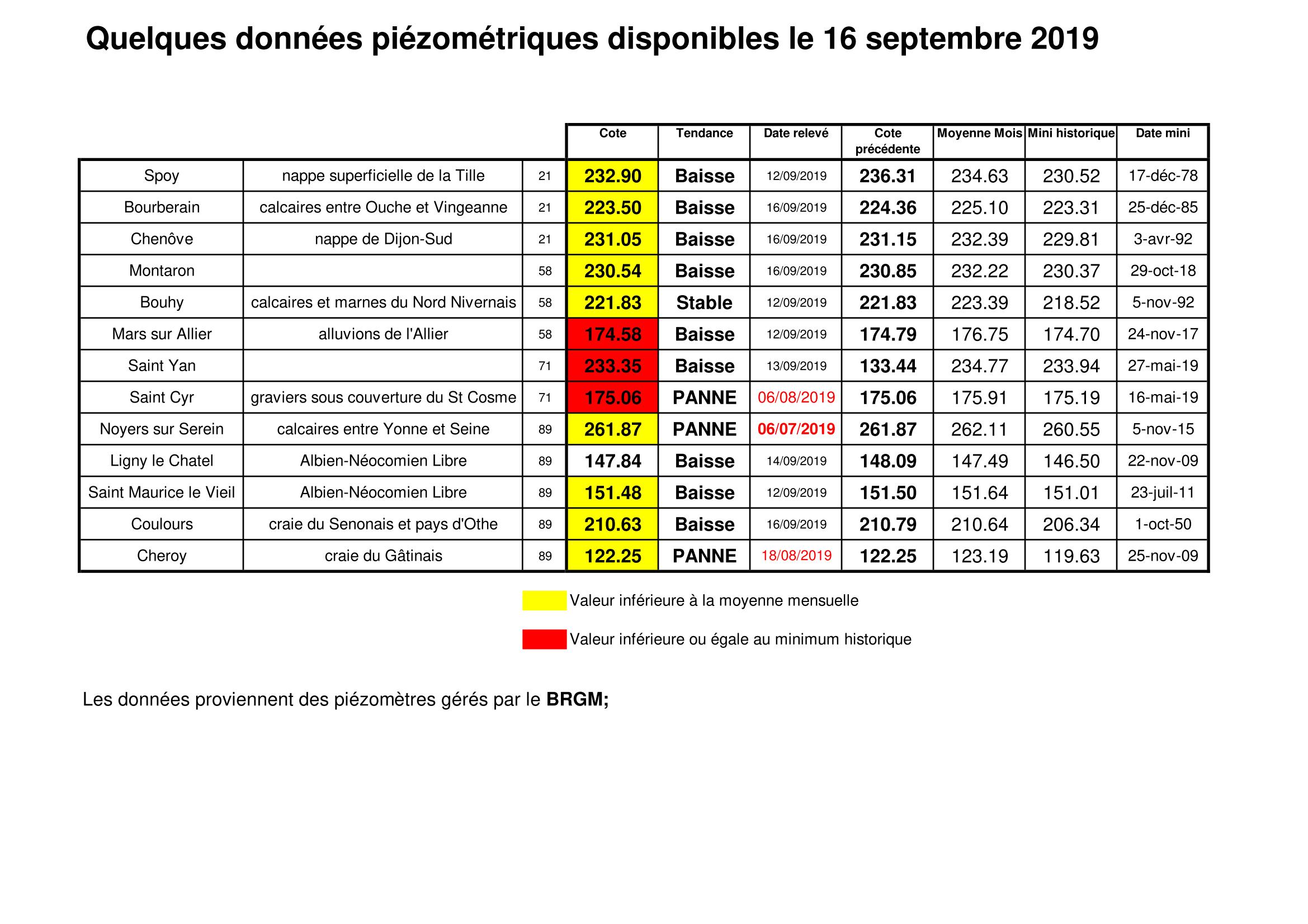 Bulletin Sécheresse BFC/Ouest 16-09-2019