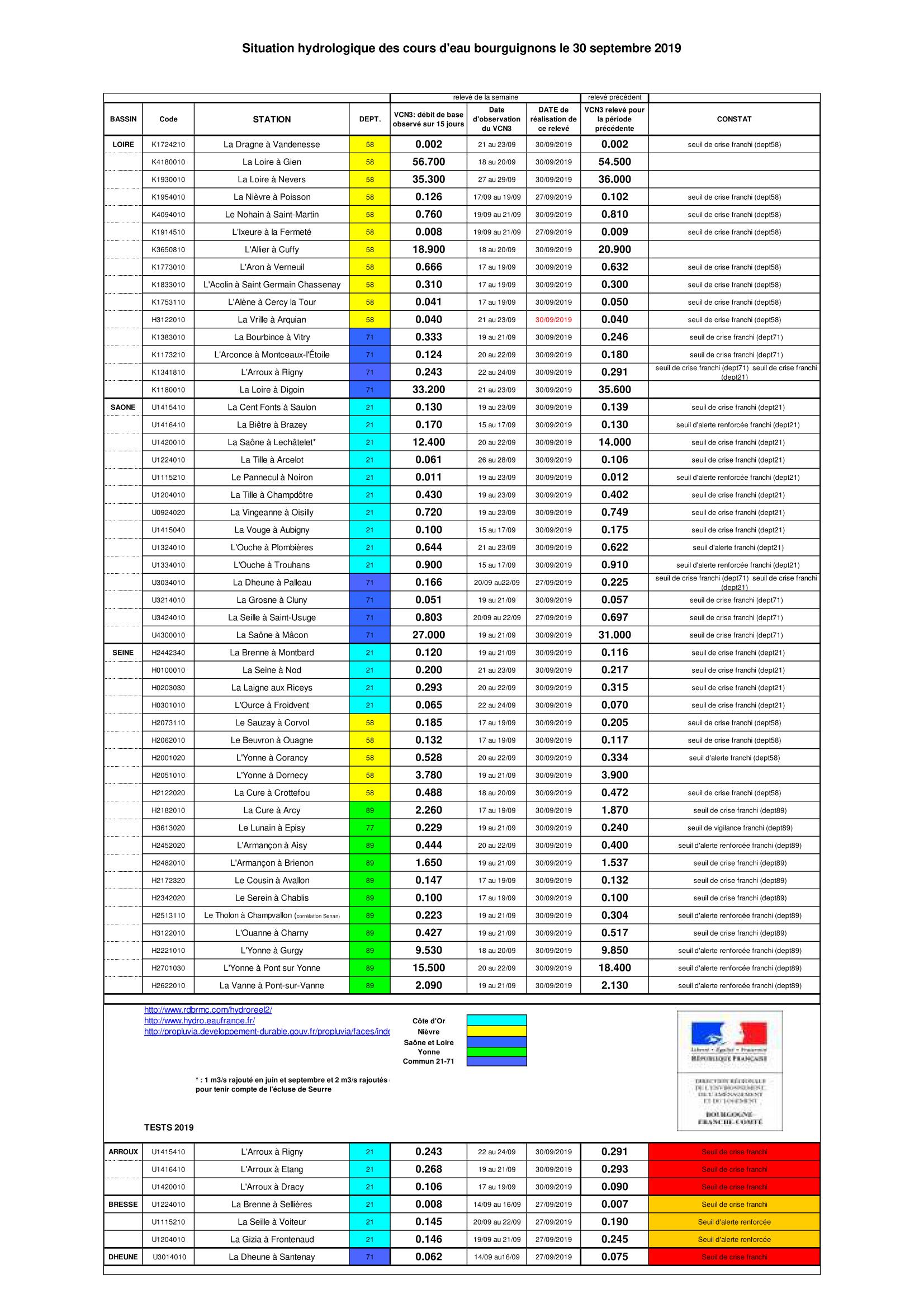 Bulletin Sécheresse BFC/Ouest 30-09-2019