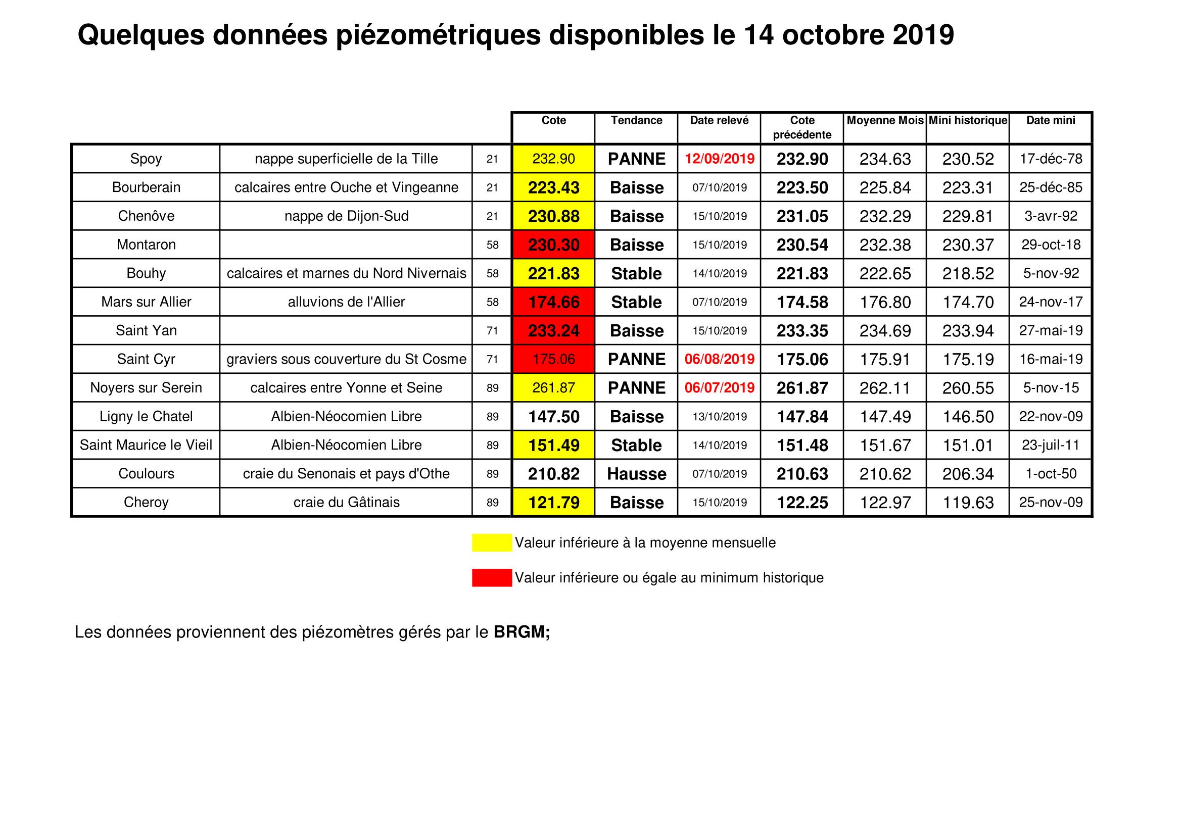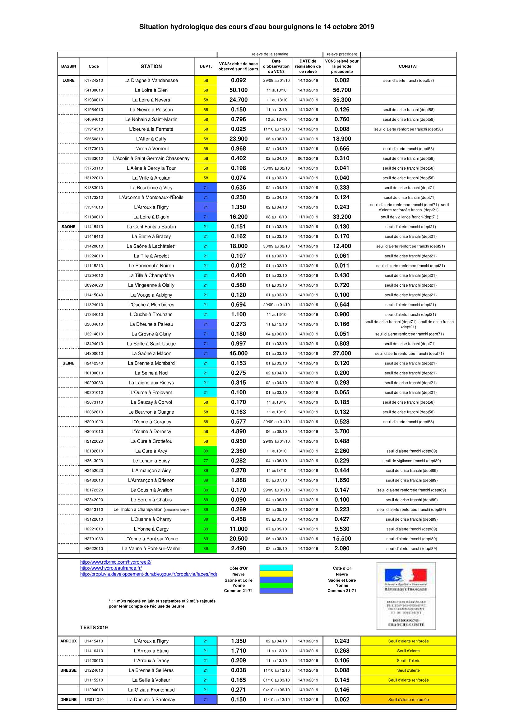 Bulletin Sécheresse BFC/Ouest 14-10-2019