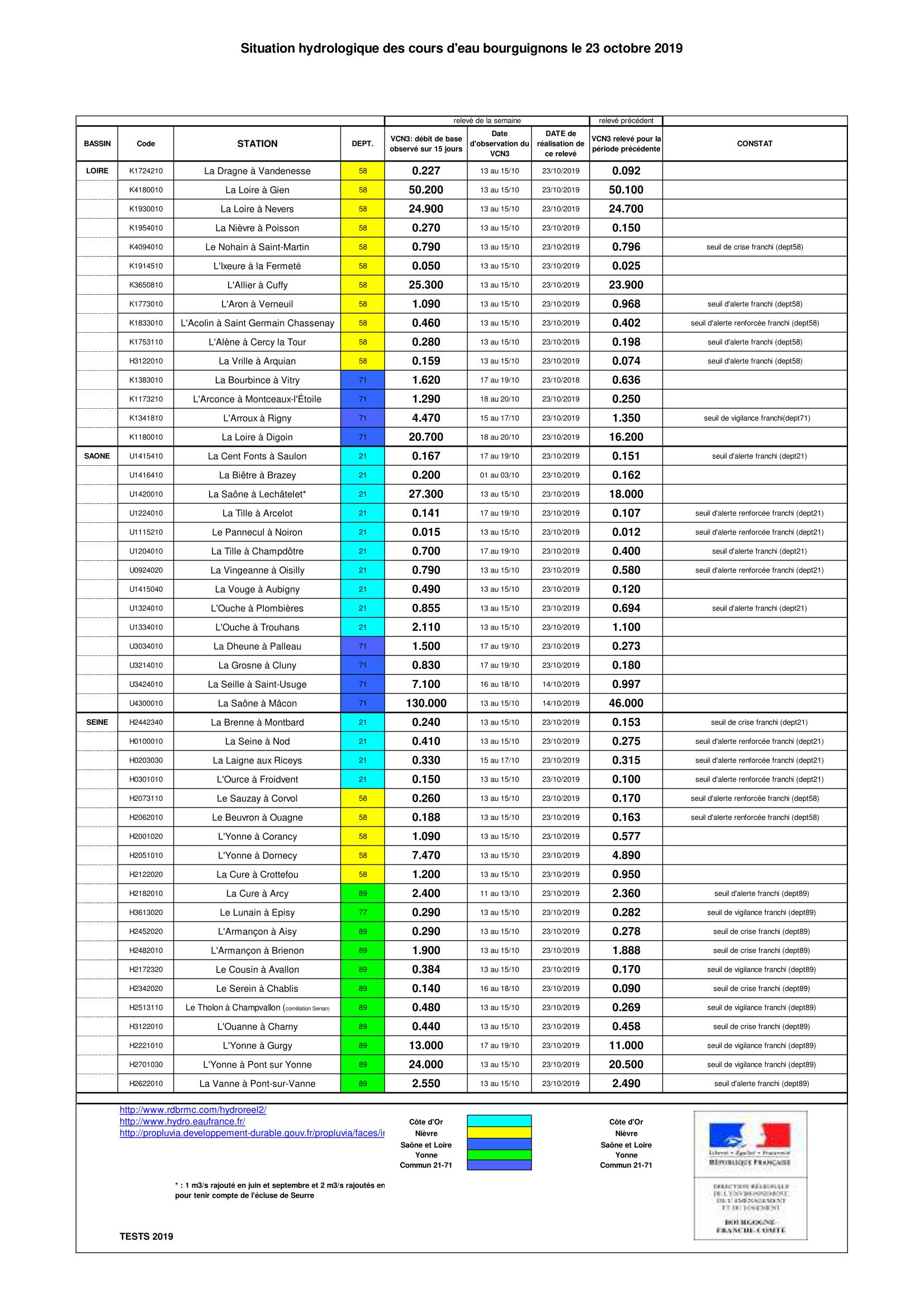 Bulletin Sécheresse BFC/Ouest 23-10-2019