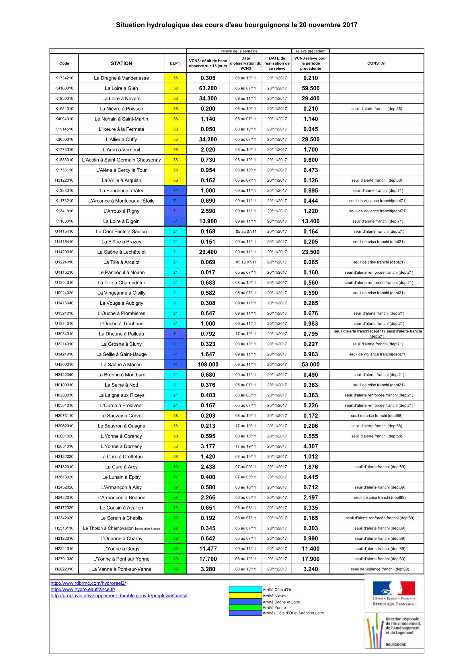 Bulletin Sécheresse BFC/Ouest 20-11-2017