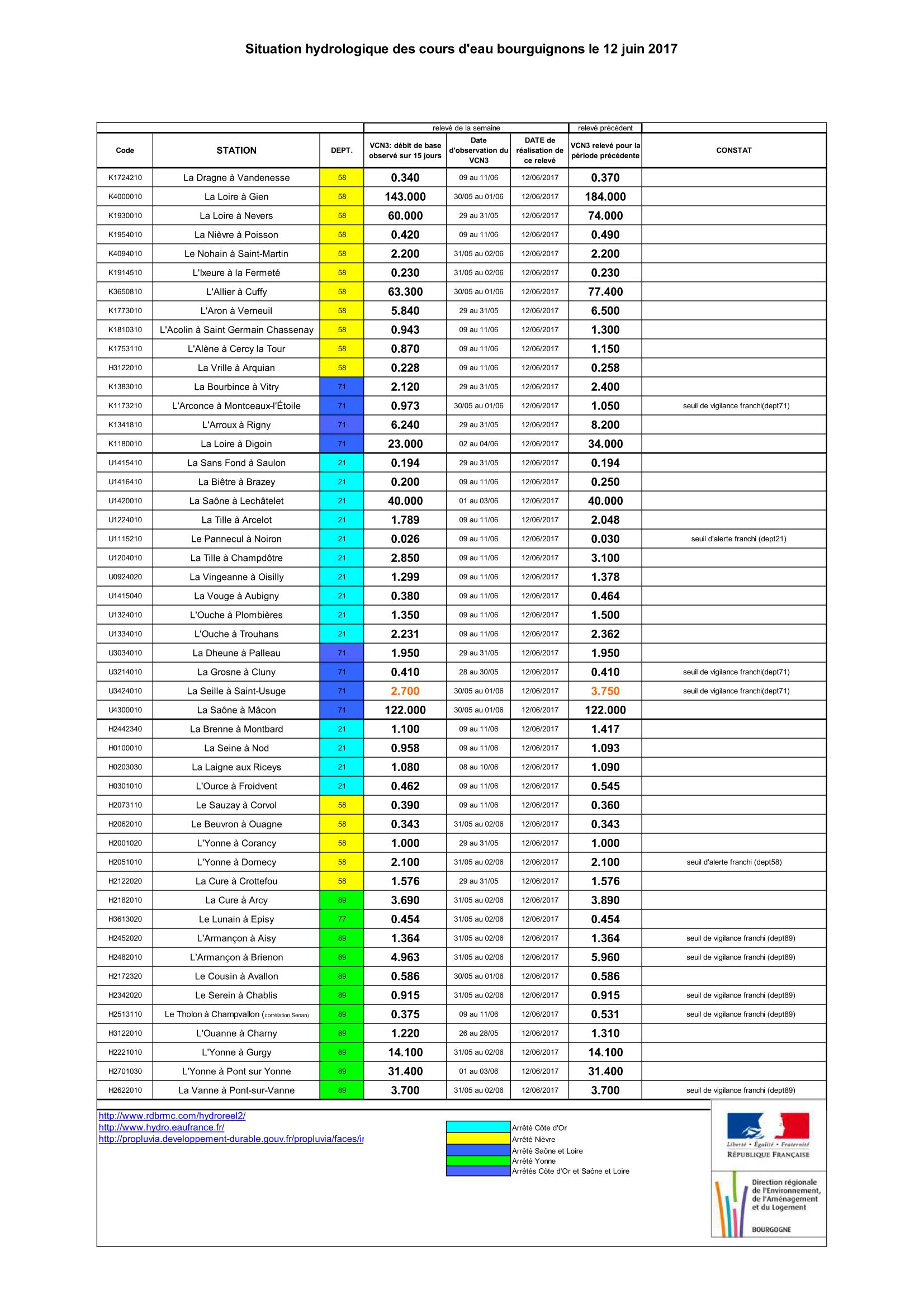 Bulletin Sécheresse BFC/Ouest 12-06-2017