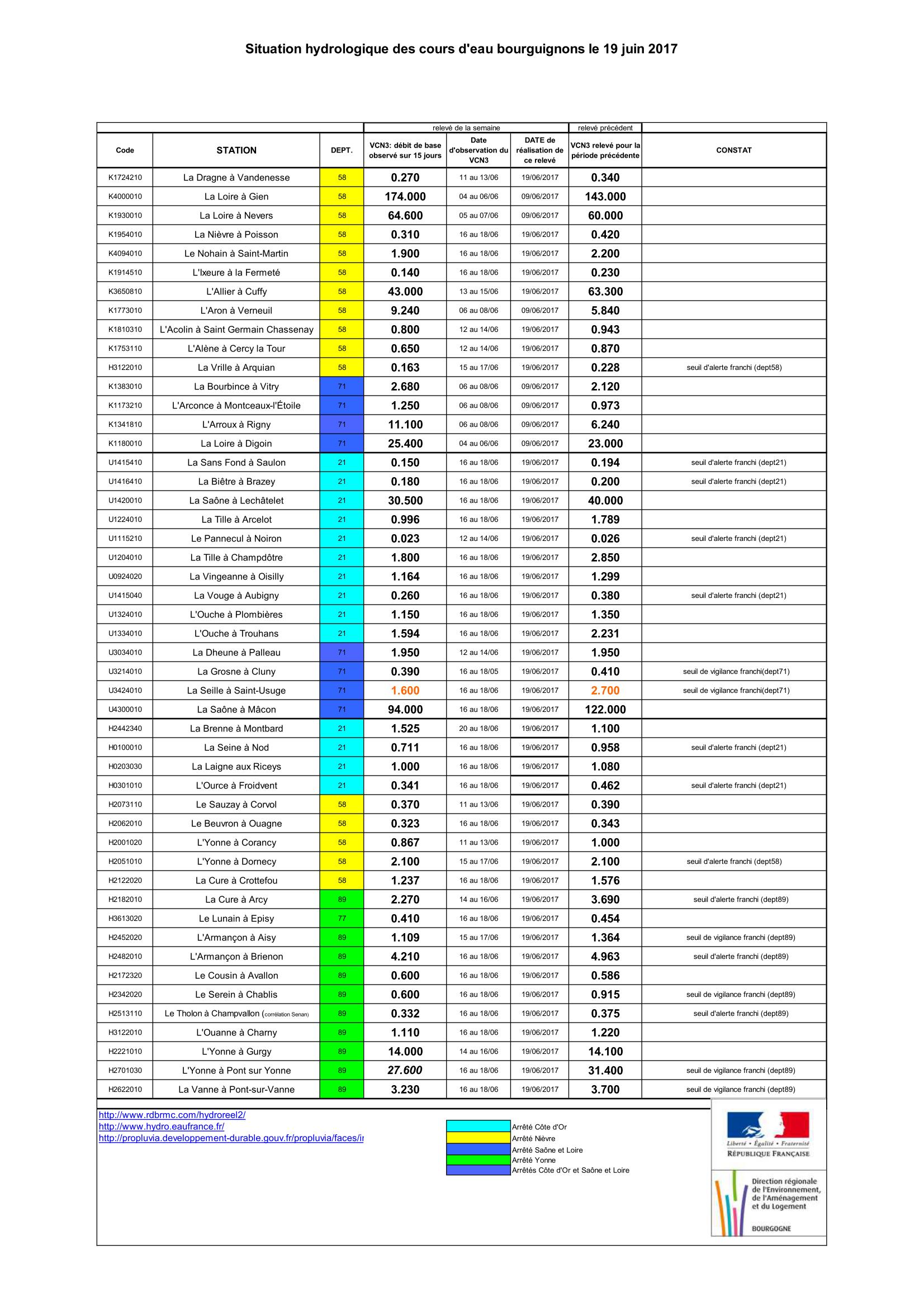 Bulletin Sécheresse BFC/Ouest 19-06-2017