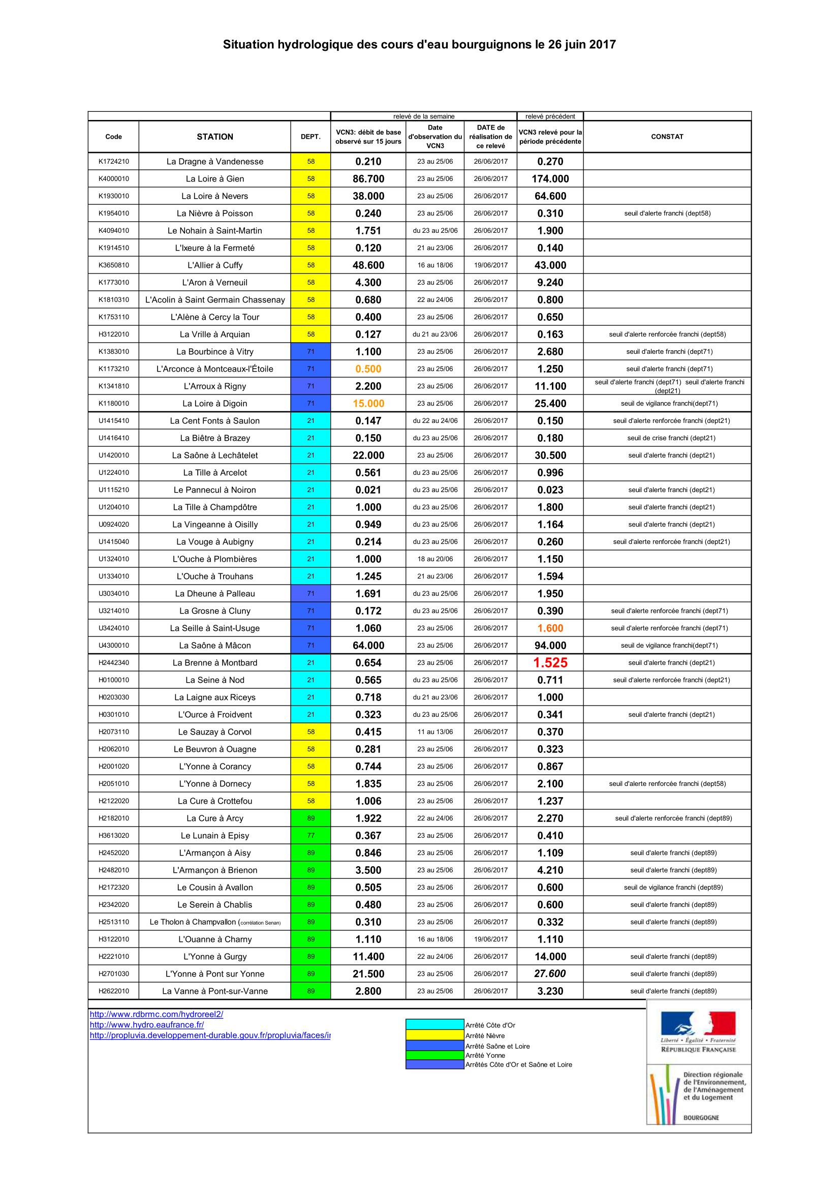 Bulletin Sécheresse BFC/Ouest 26-06-2017