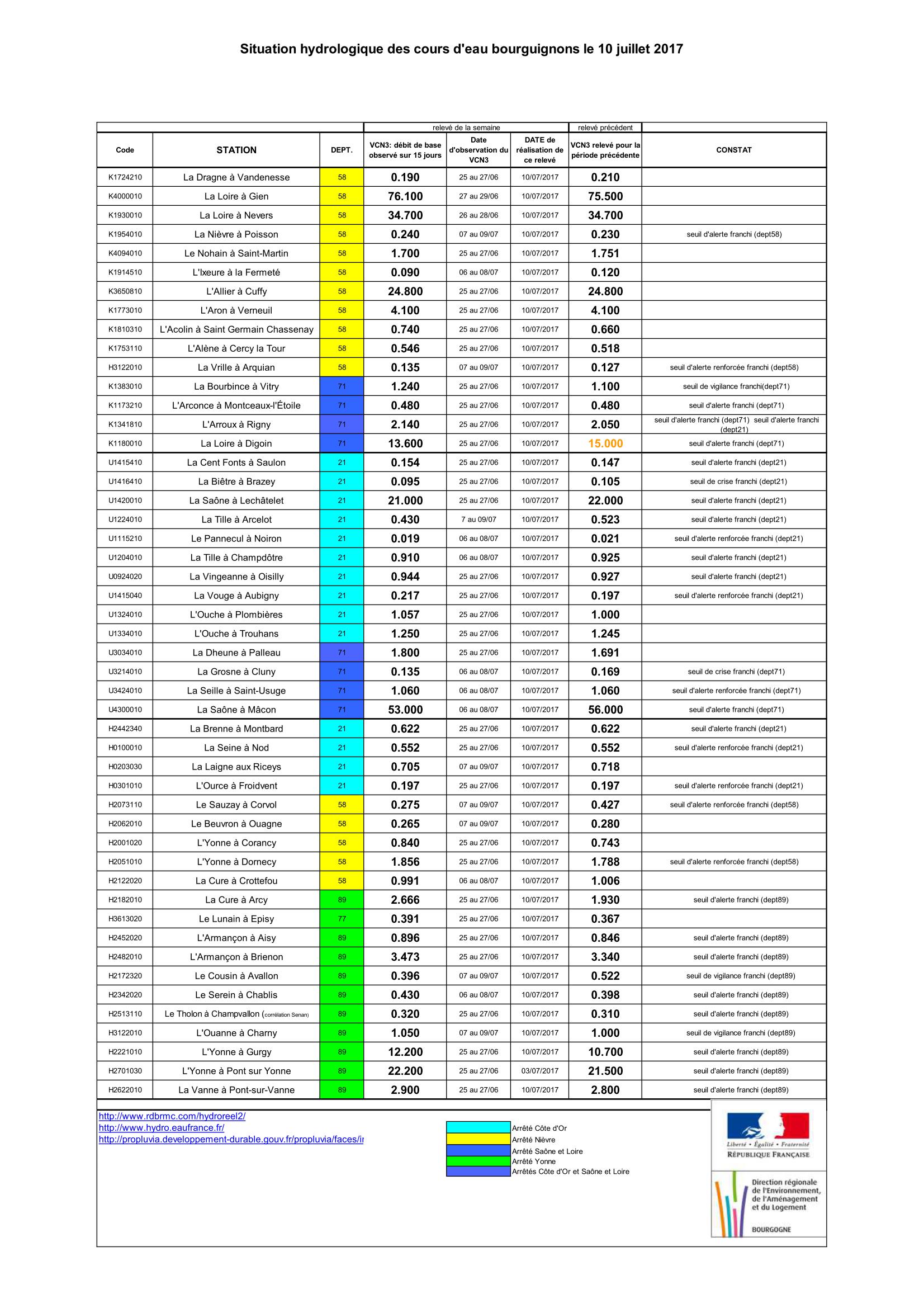 Bulletin Sécheresse BFC/Ouest 10-07-2017