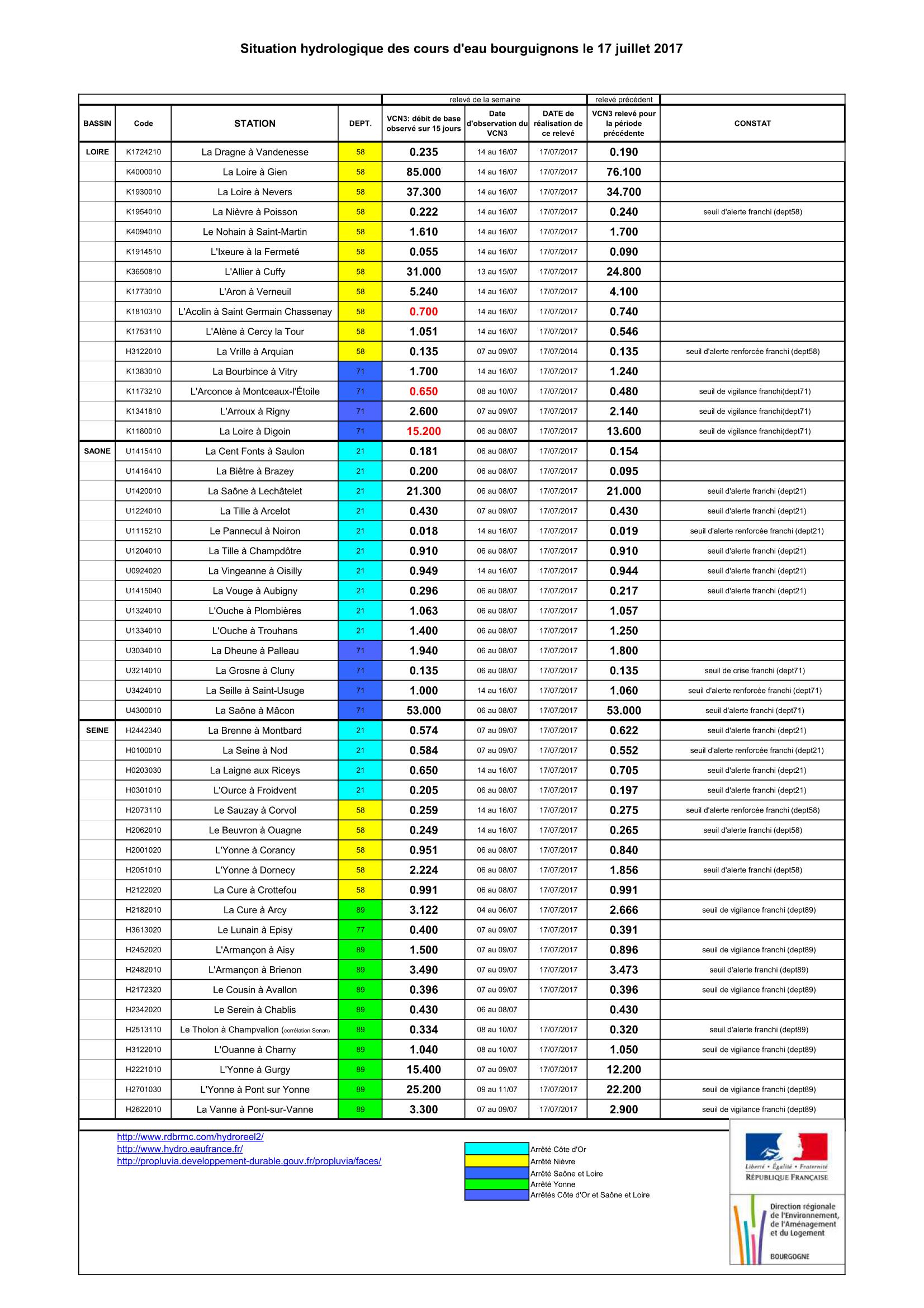 Bulletin Sécheresse BFC/Ouest 17-07-2017