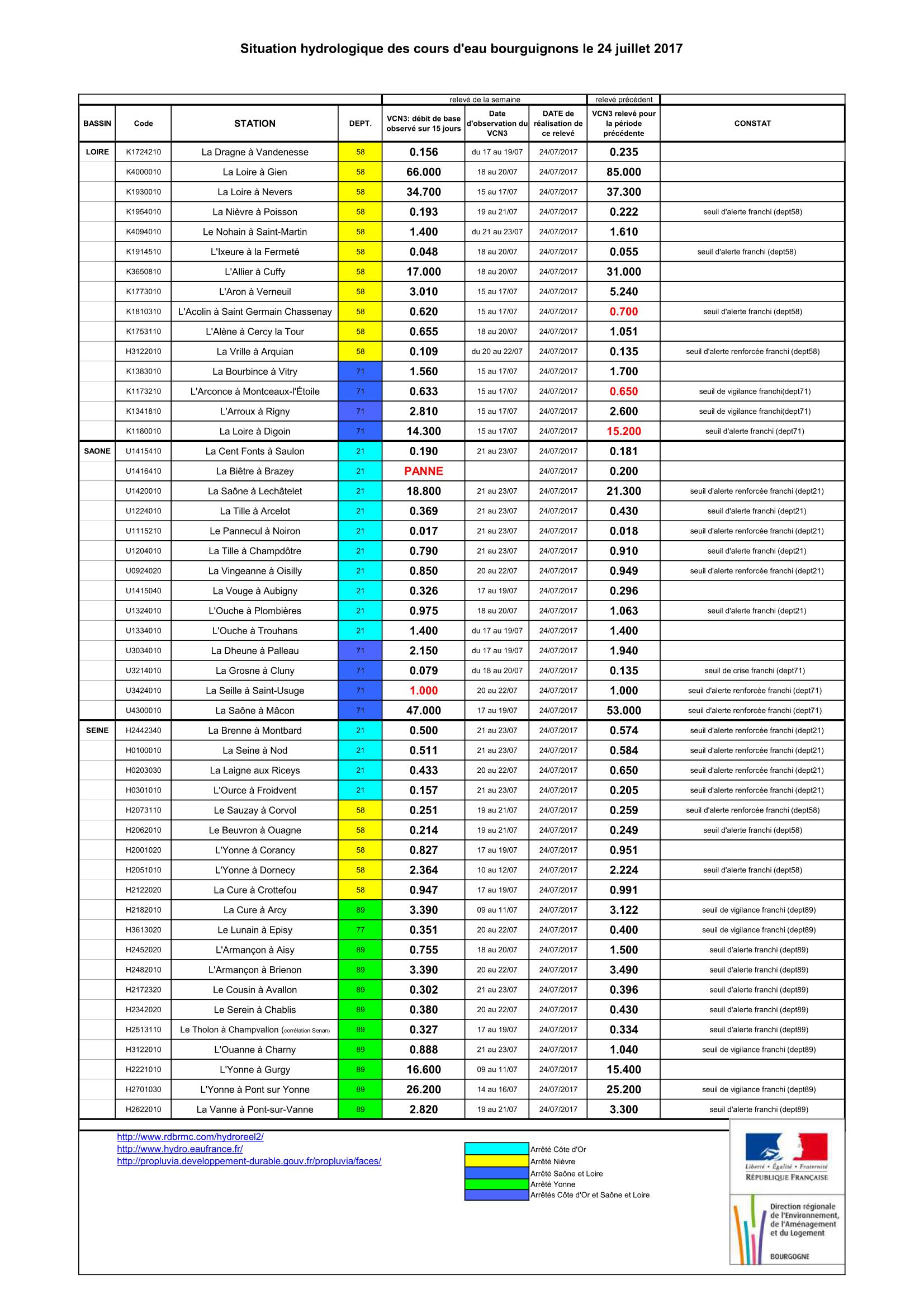 Bulletin Sécheresse BFC/Ouest 24-07-2017