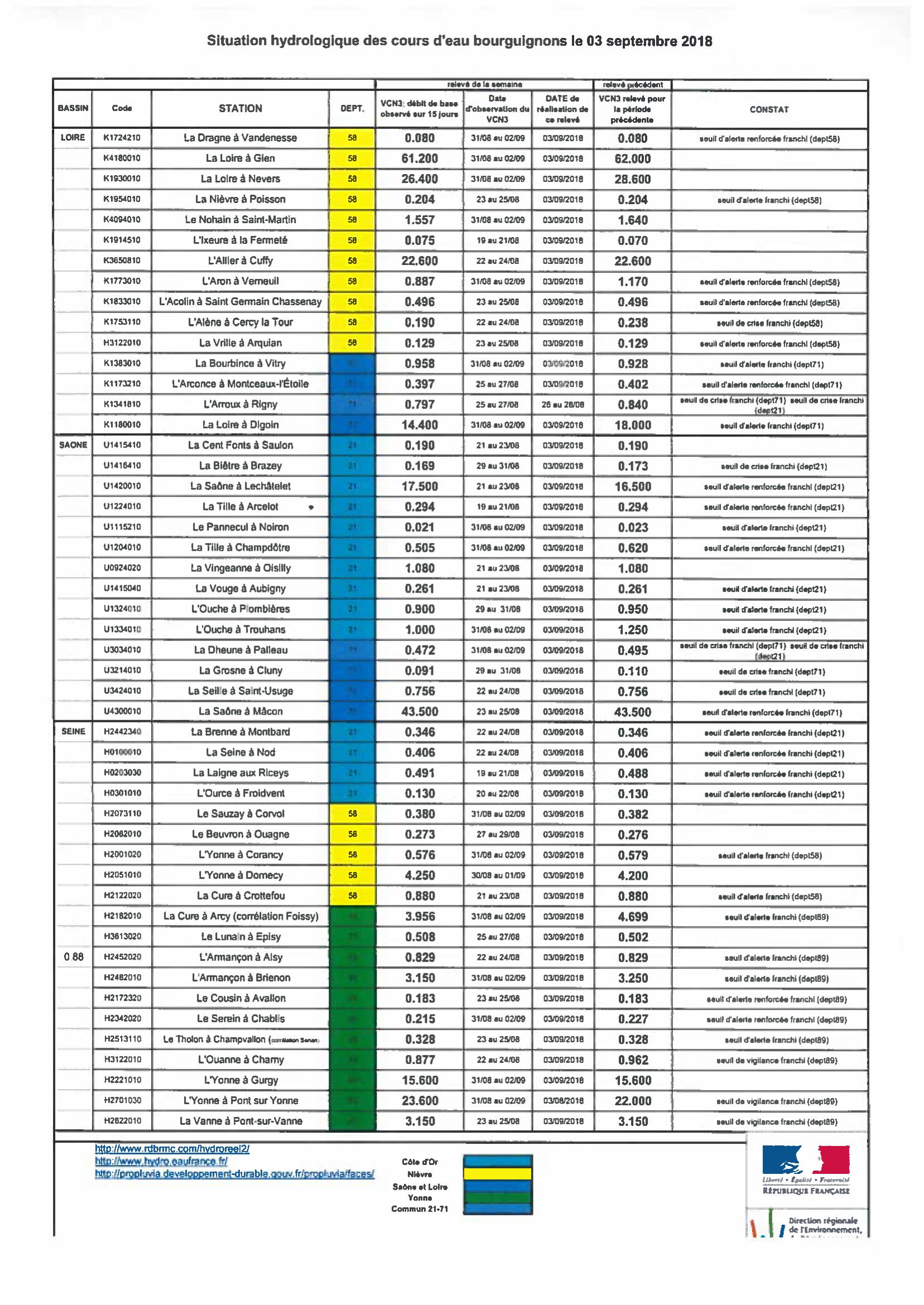 Bulletin Sécheresse BFC/Ouest 03-09-2018