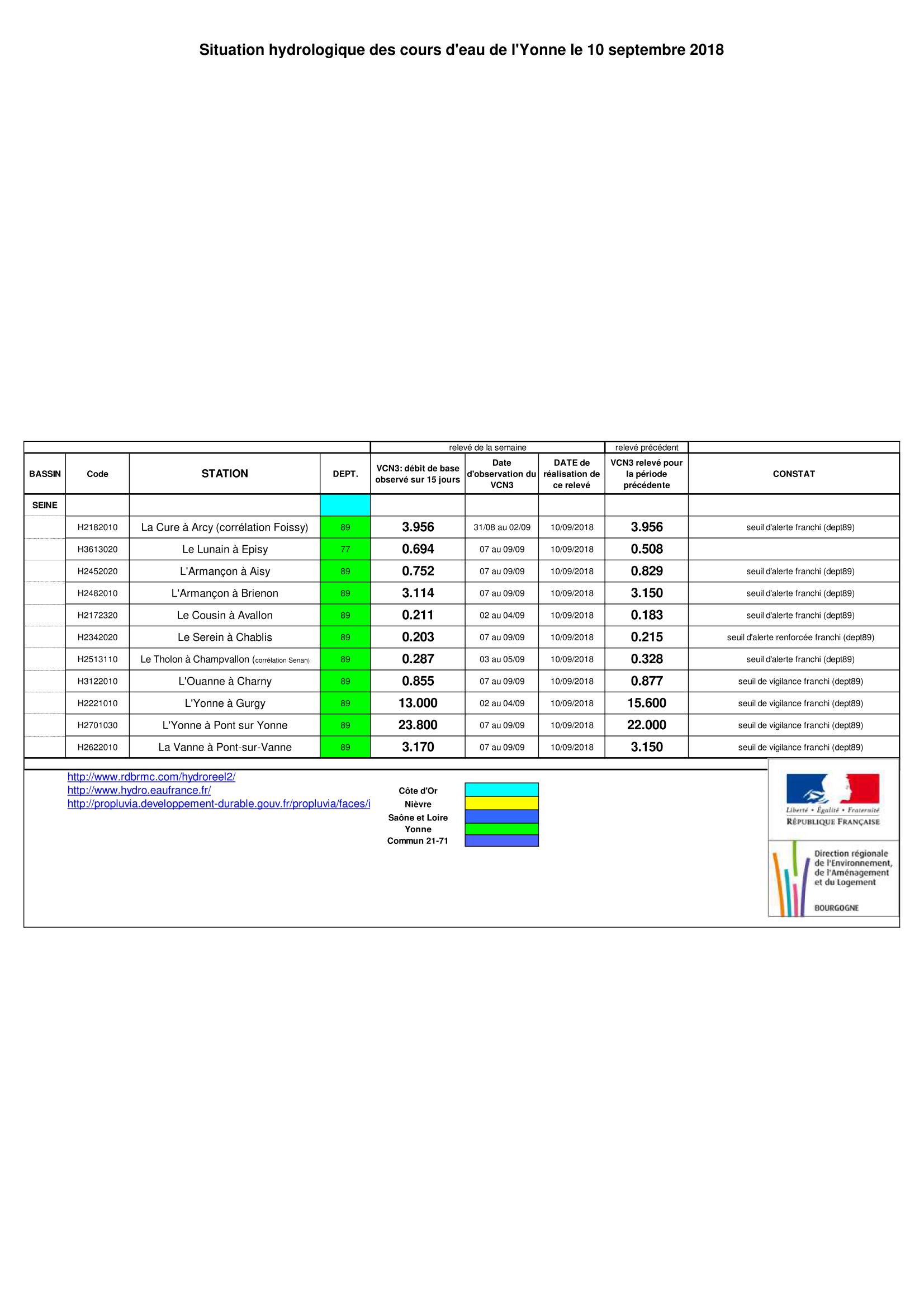Bulletin Sécheresse BFC/Ouest 10-09-2018