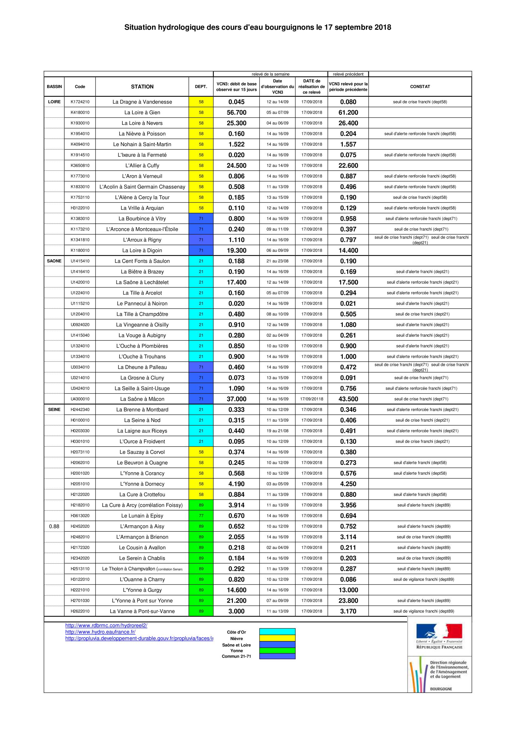 Bulletin Sécheresse BFC/Ouest 17-09-2018
