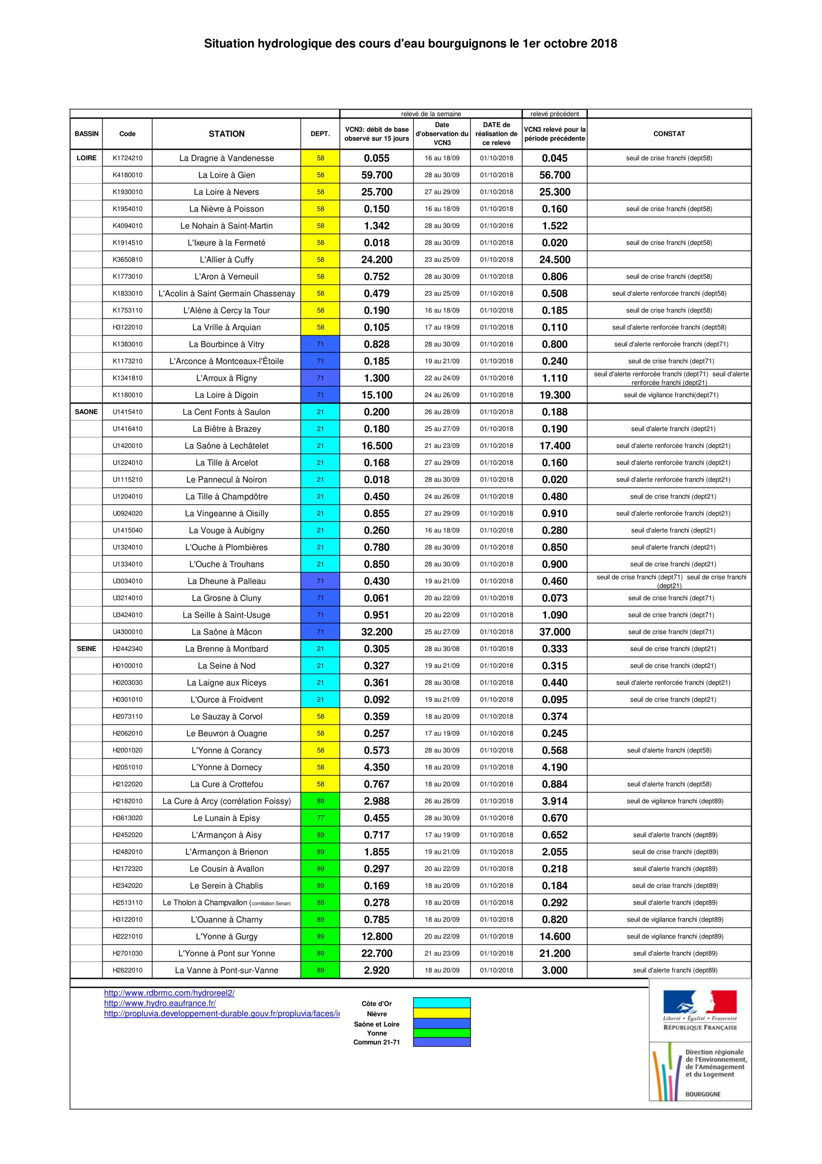 Bulletin Sécheresse BFC/Ouest 01-10-2018