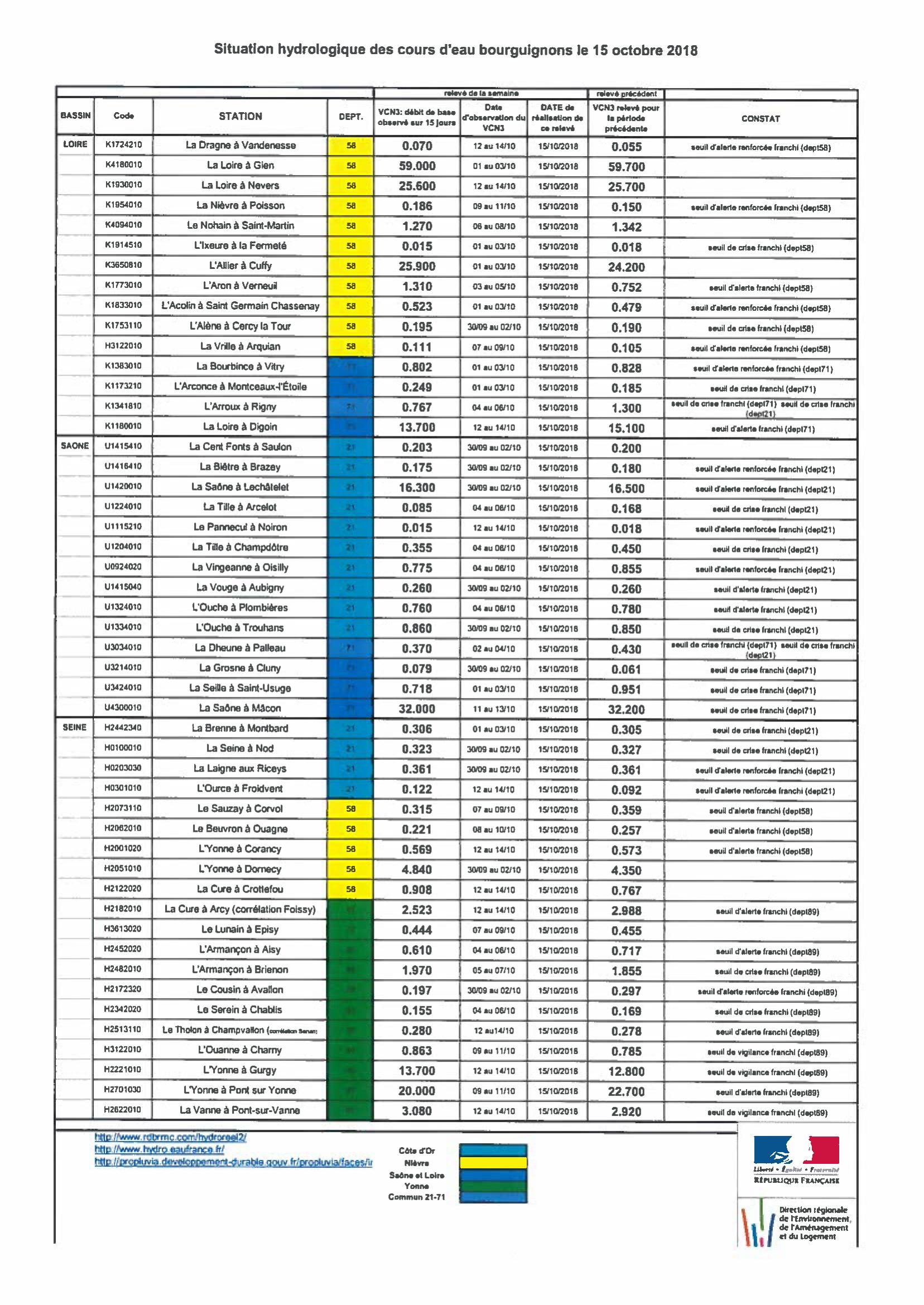 Bulletin Sécheresse BFC/Ouest 15-10-2018