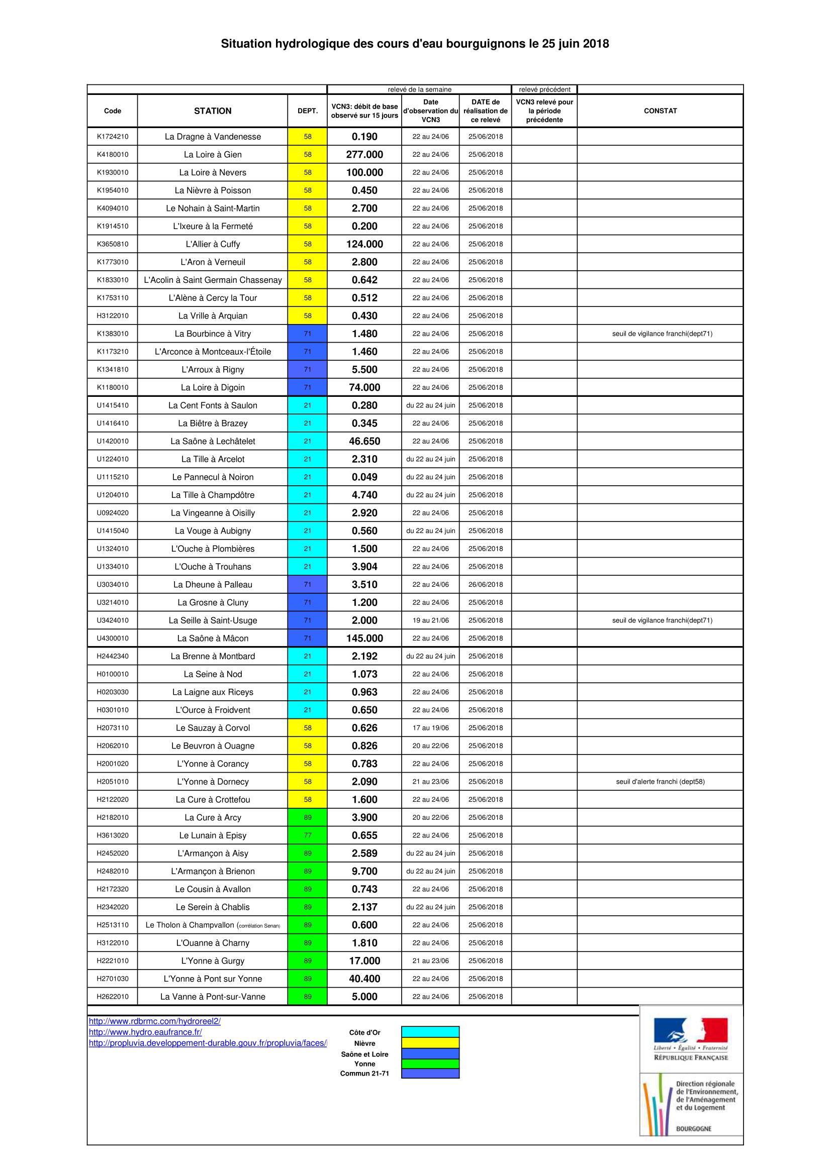 Bulletin Sécheresse BFC/Ouest 25-06-2018
