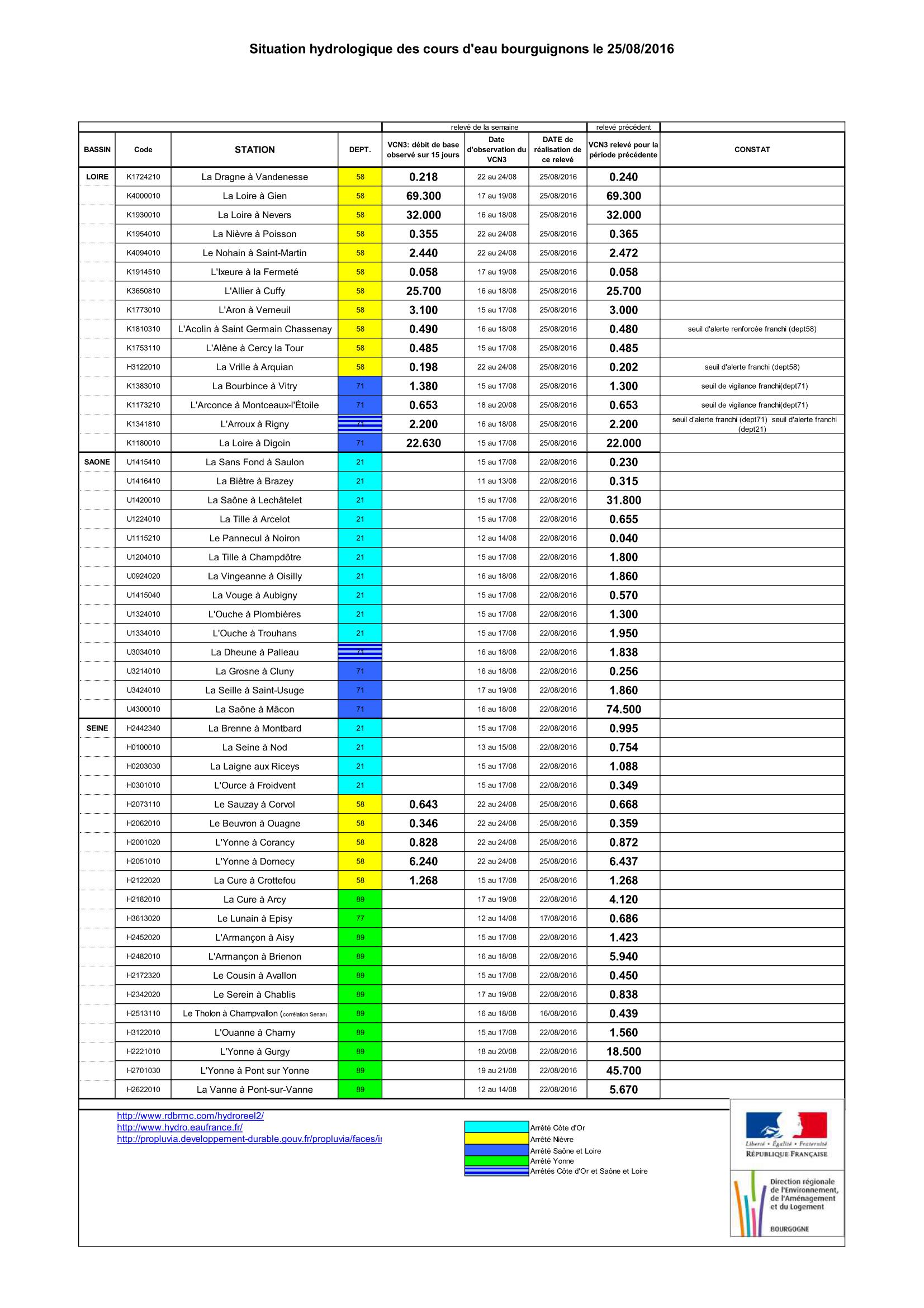 Bulletin Sécheresse BFC/Ouest-58 25-08-2016