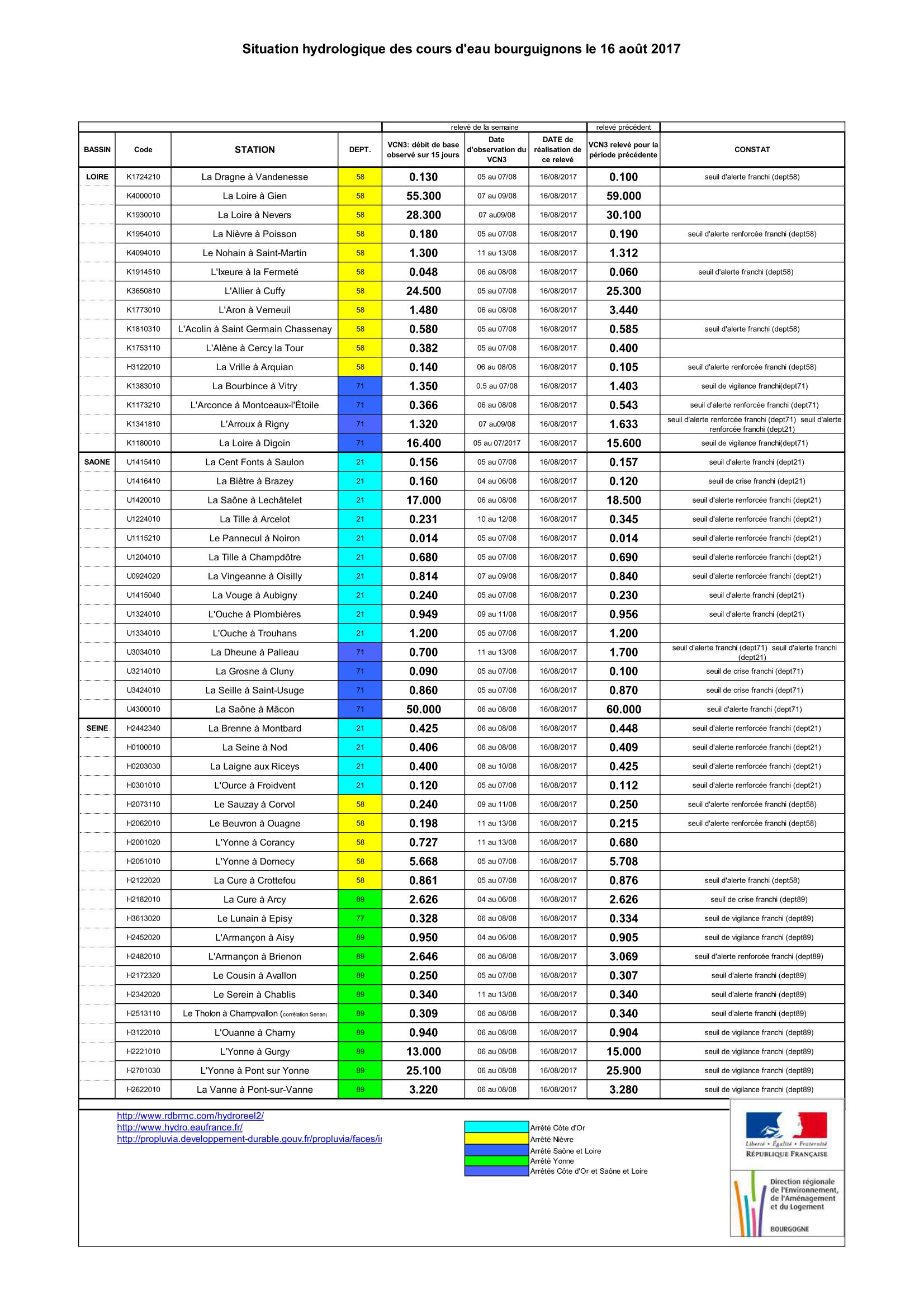 Bulletin Sécheresse BFC/Ouest 16-08-2017
