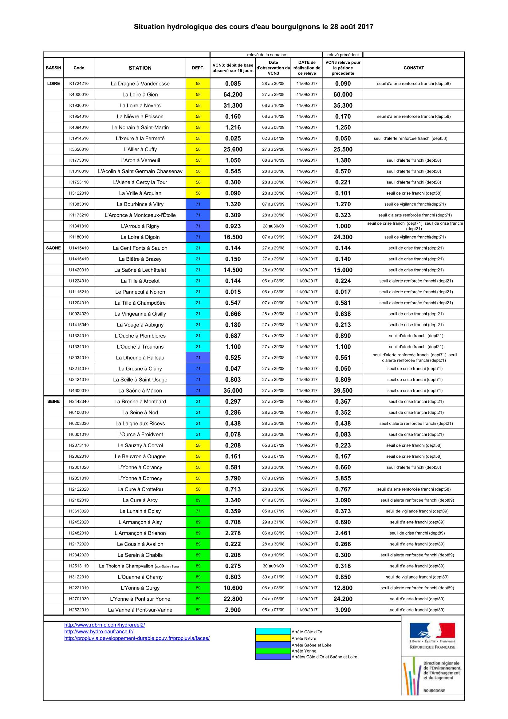 Bulletin Sécheresse BFC/Ouest 28-08-2017