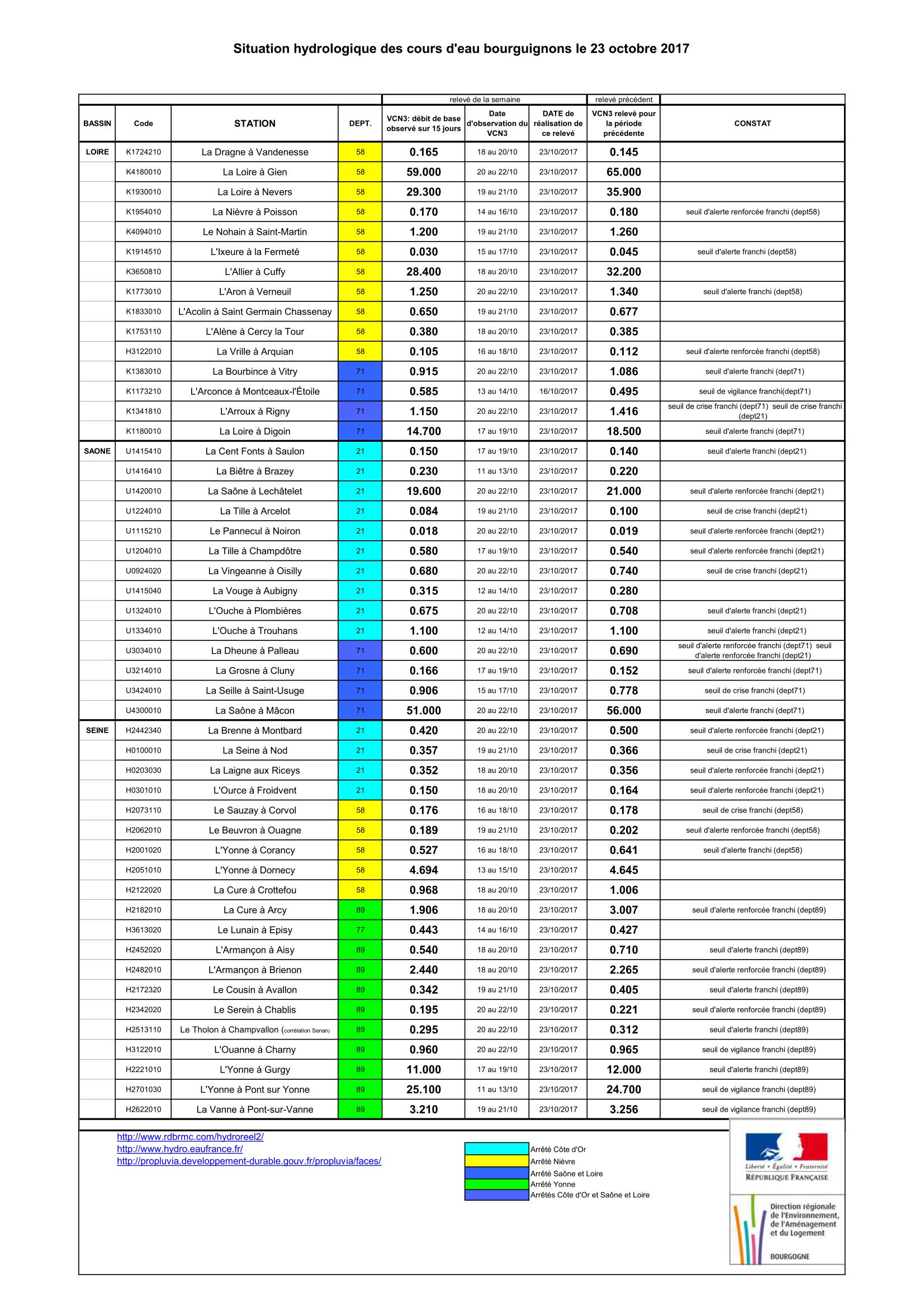 Bulletin Sécheresse BFC/Ouest 23-10-2017
