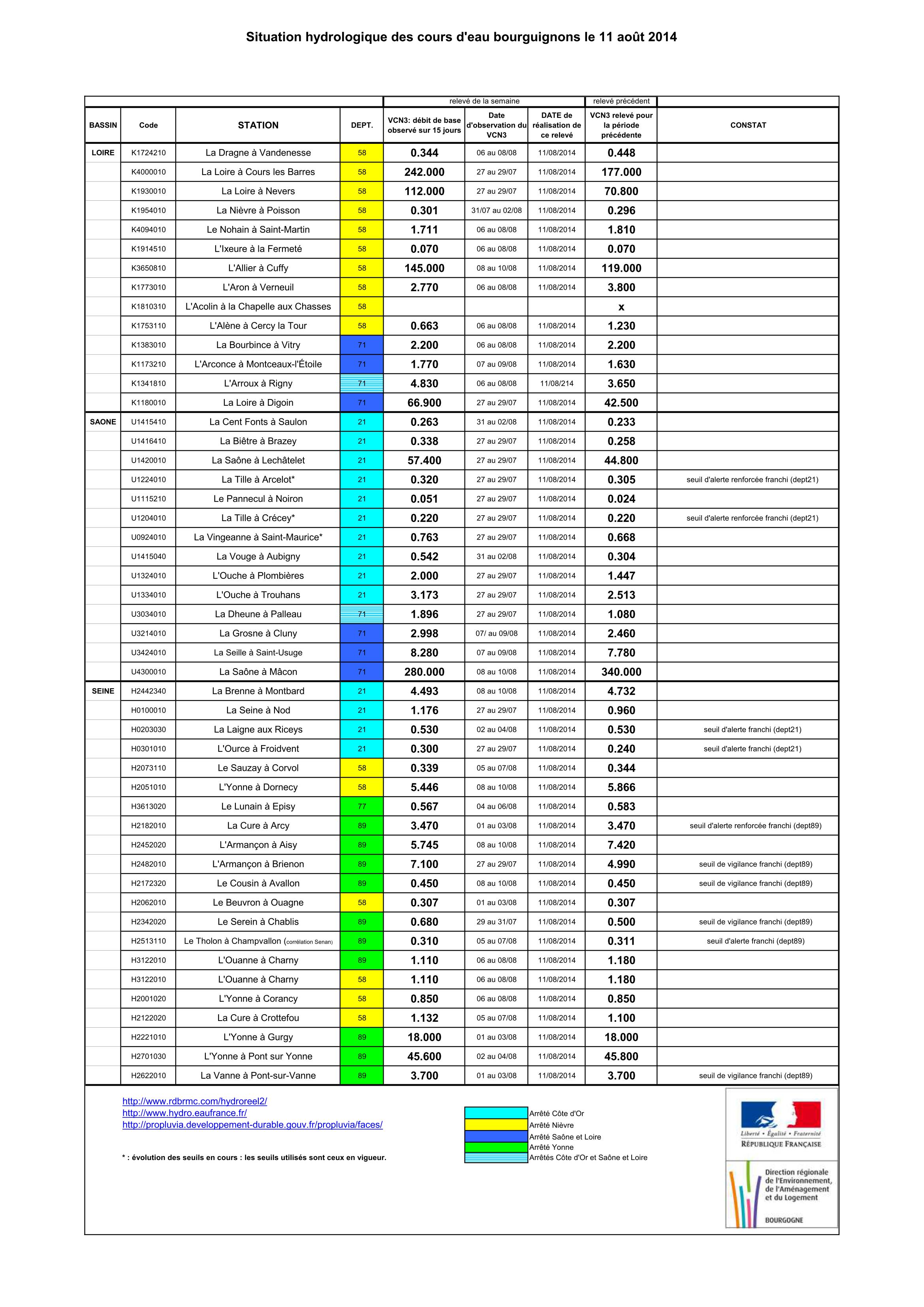 Bulletin Sécheresse BFC/Ouest 11-08-2014