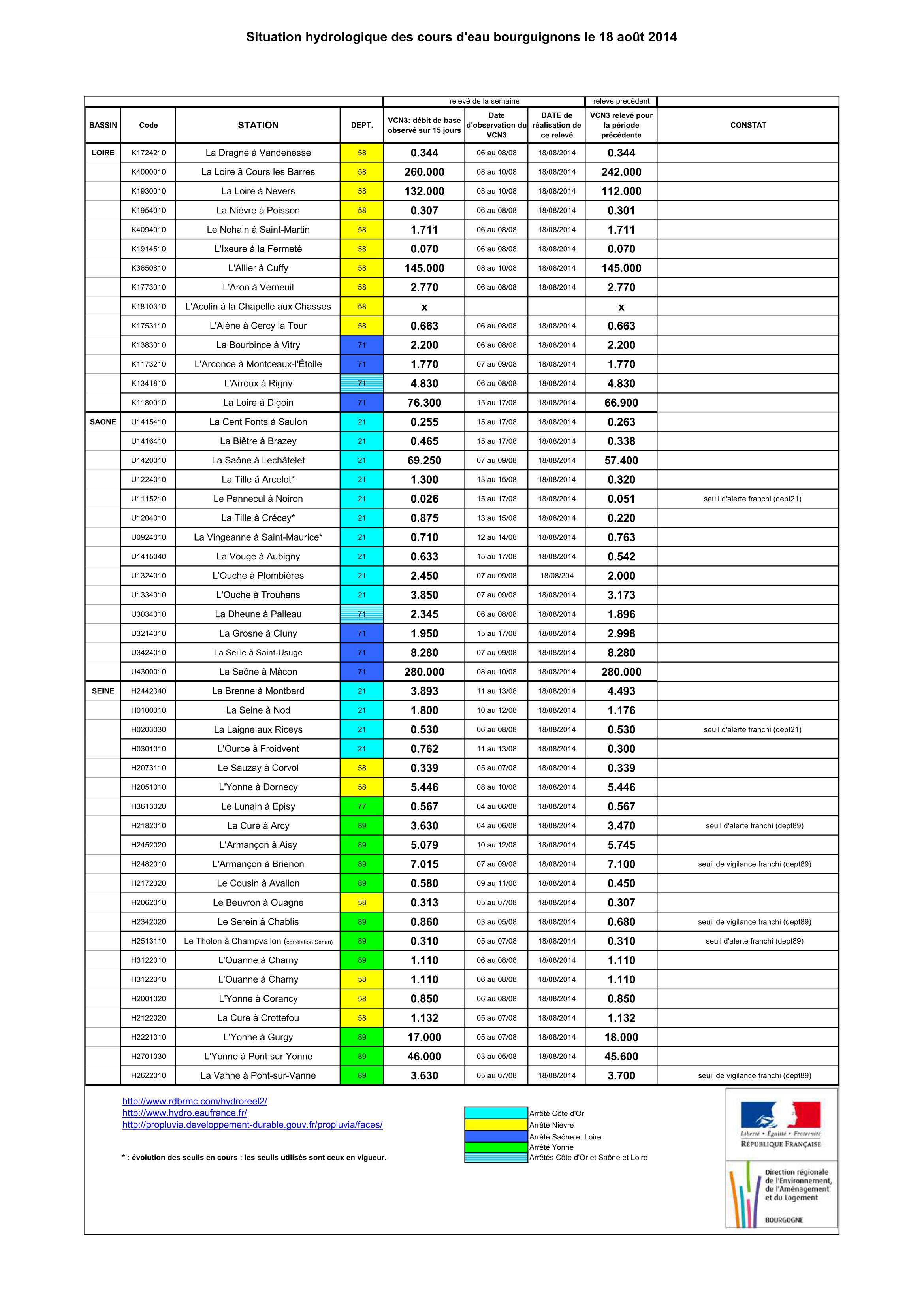 Bulletin Sécheresse BFC/Ouest 18-08-2014