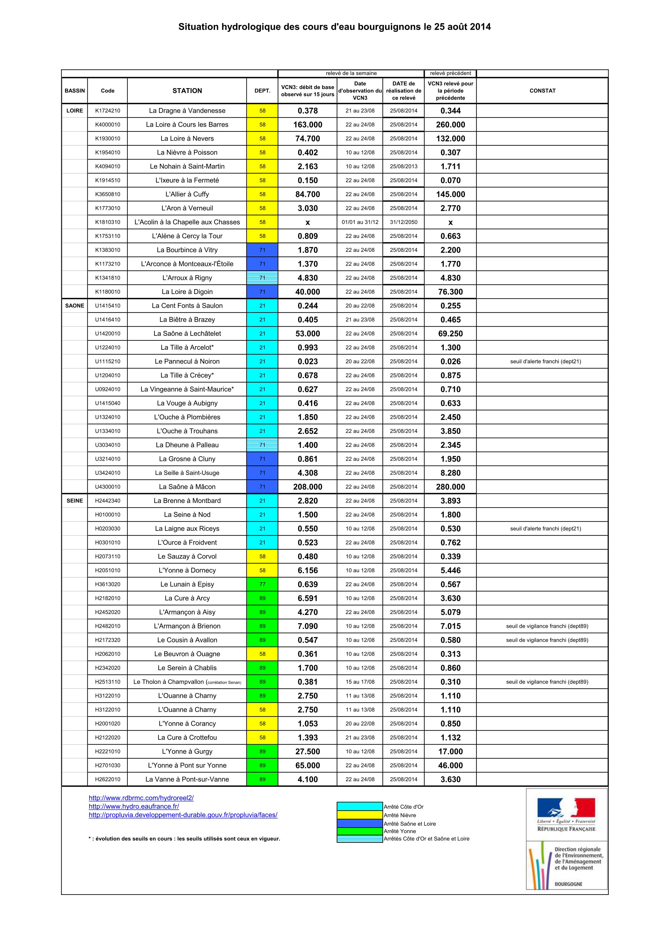 Bulletin Sécheresse BFC/Ouest 25-08-2014
