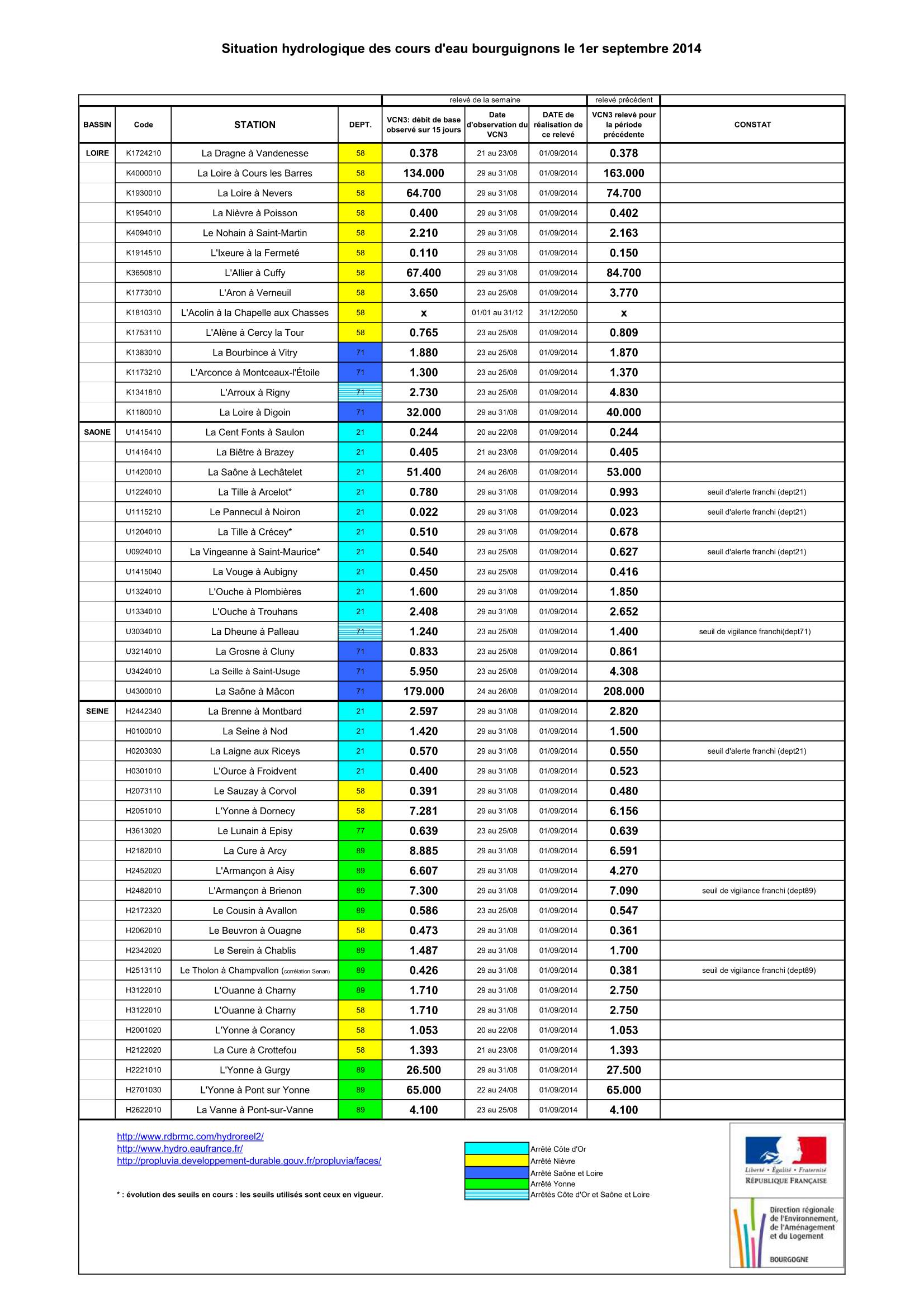 Bulletin Sécheresse BFC/Ouest 01-09-2014