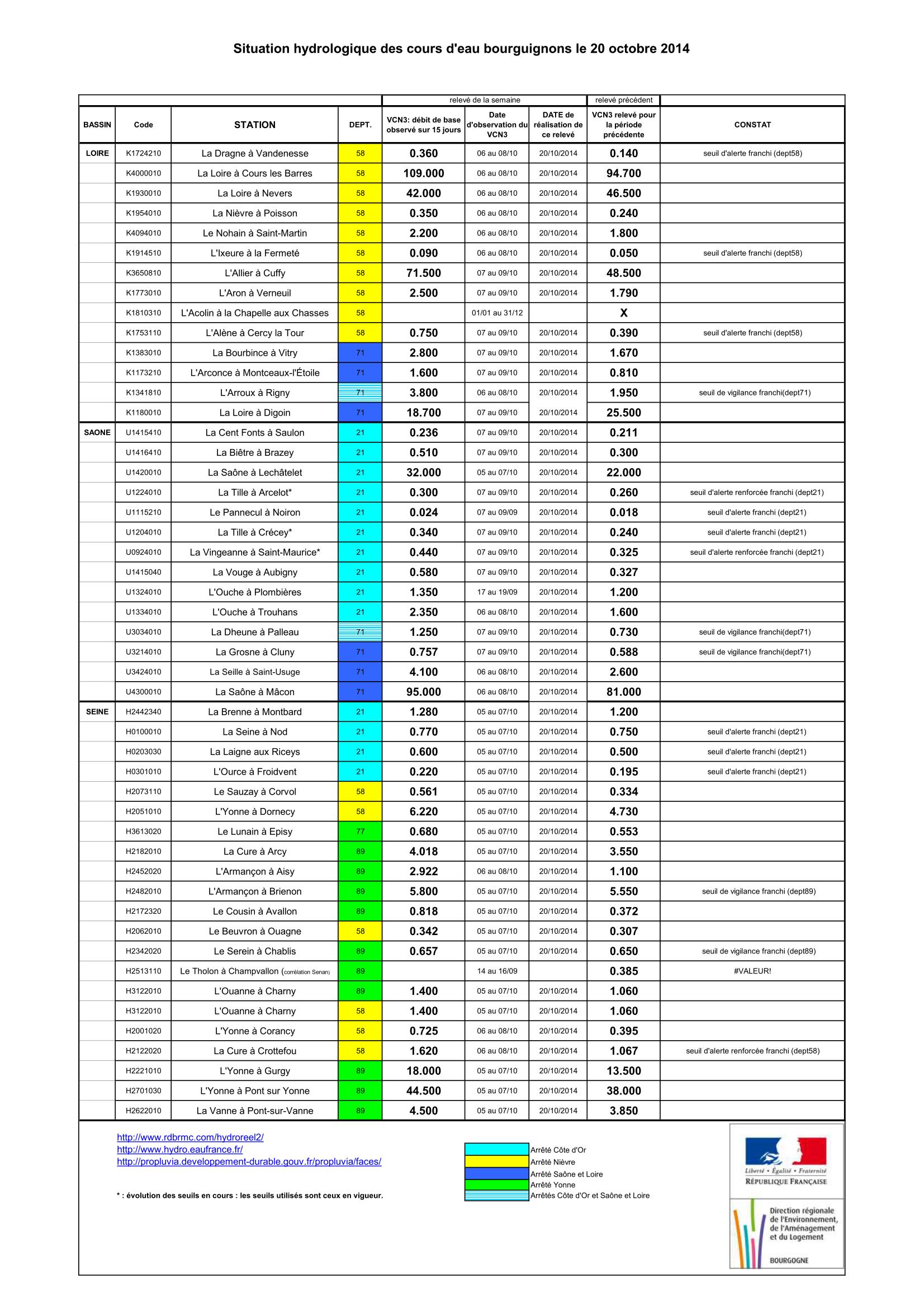 Bulletin Sécheresse BFC/Ouest 20-10-2014