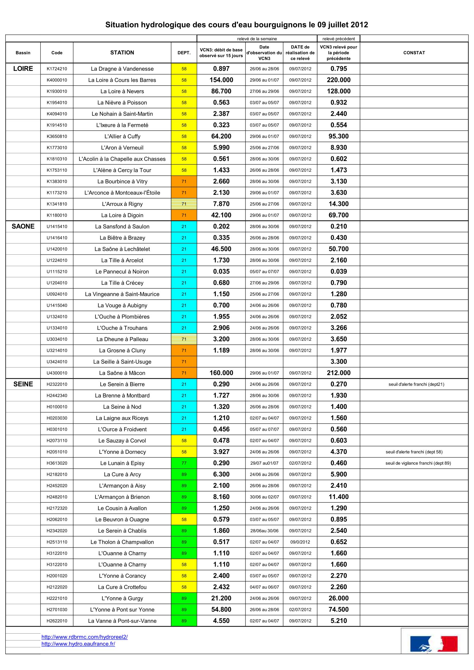 Bulletin Sécheresse BFC/Ouest 09-07-2012