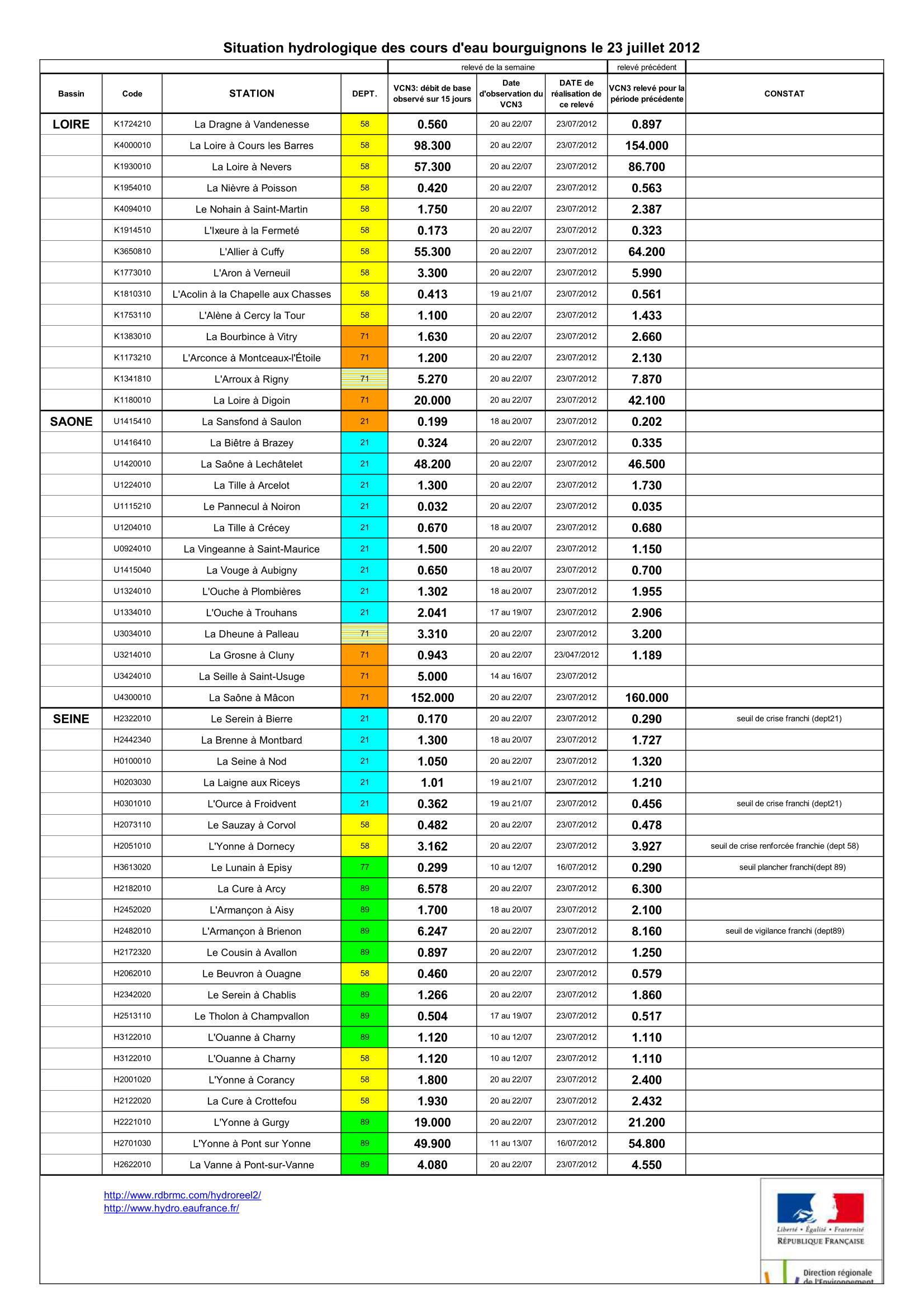 Bulletin Sécheresse BFC/Ouest 23-07-2012