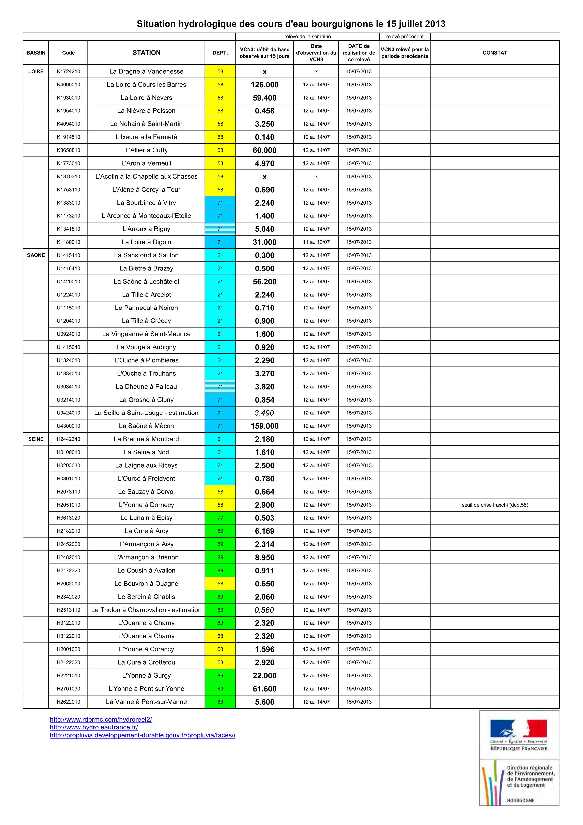 Bulletin Sécheresse BFC/Ouest 15-07-2013