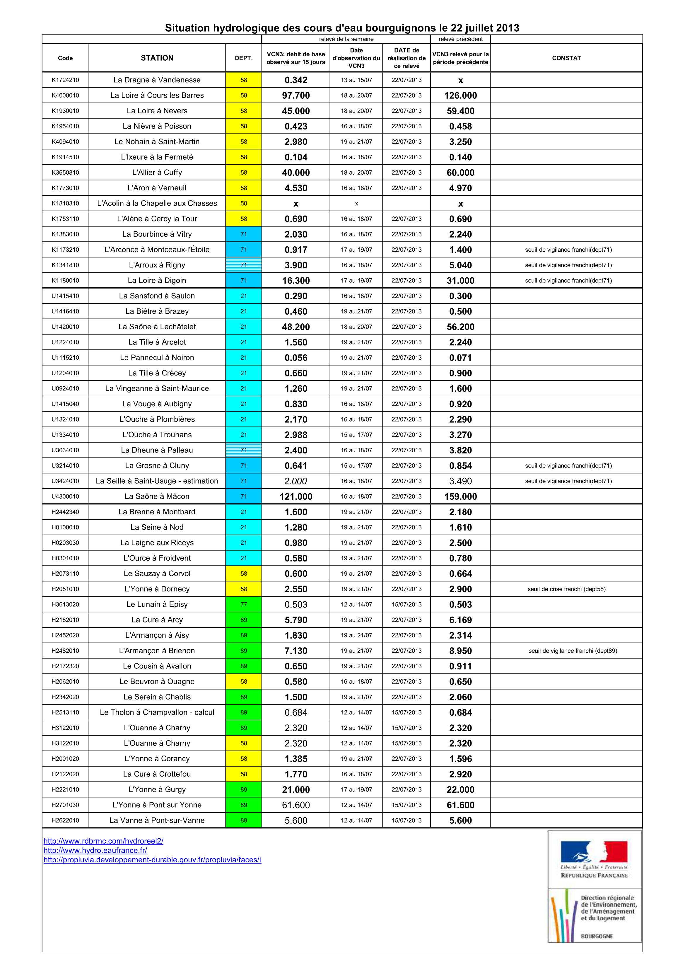 Bulletin Sécheresse BFC/Ouest 22-07-2013