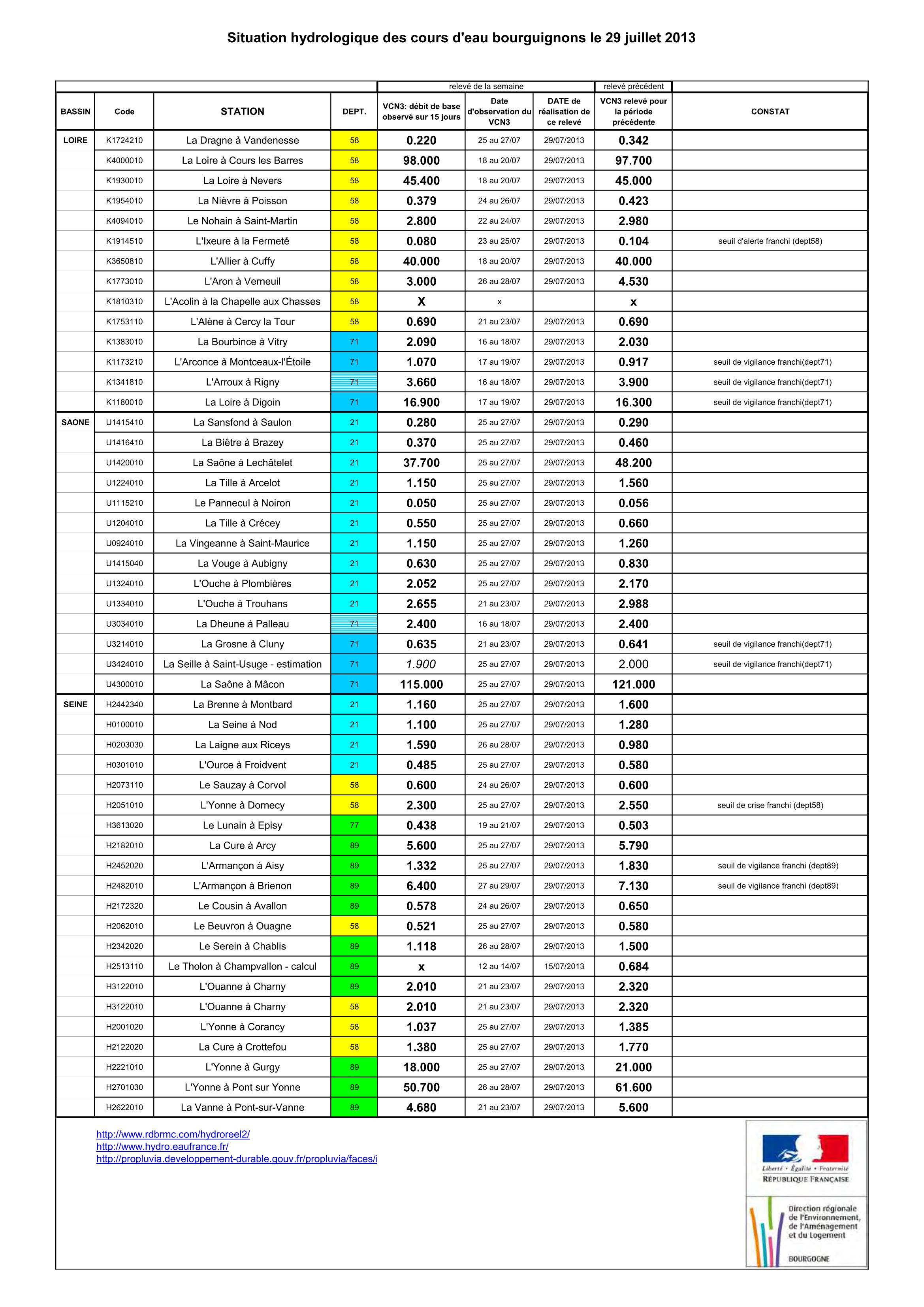 Bulletin Sécheresse BFC/Ouest 29-07-2013