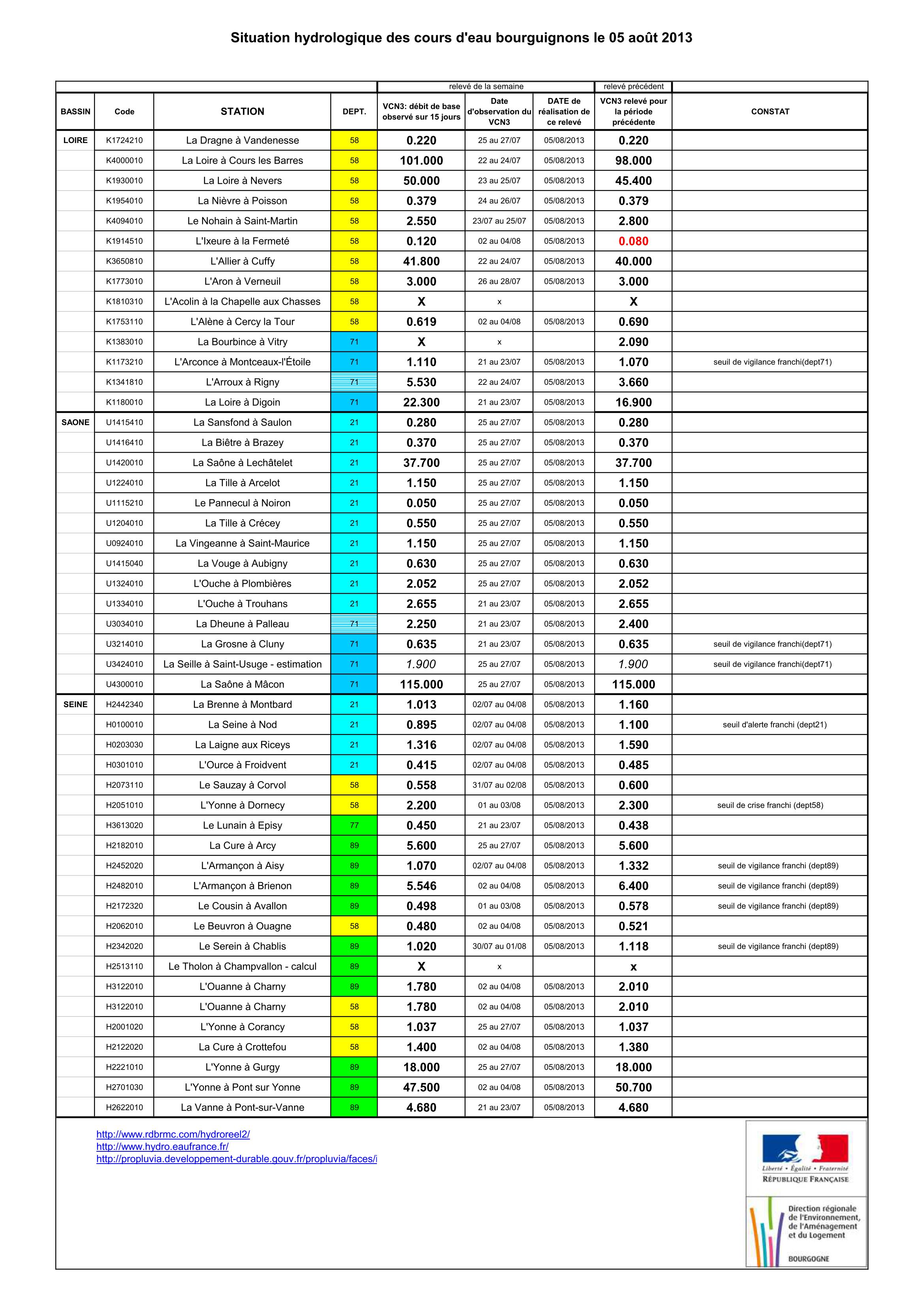 Bulletin Sécheresse BFC/Ouest 05-08-2013