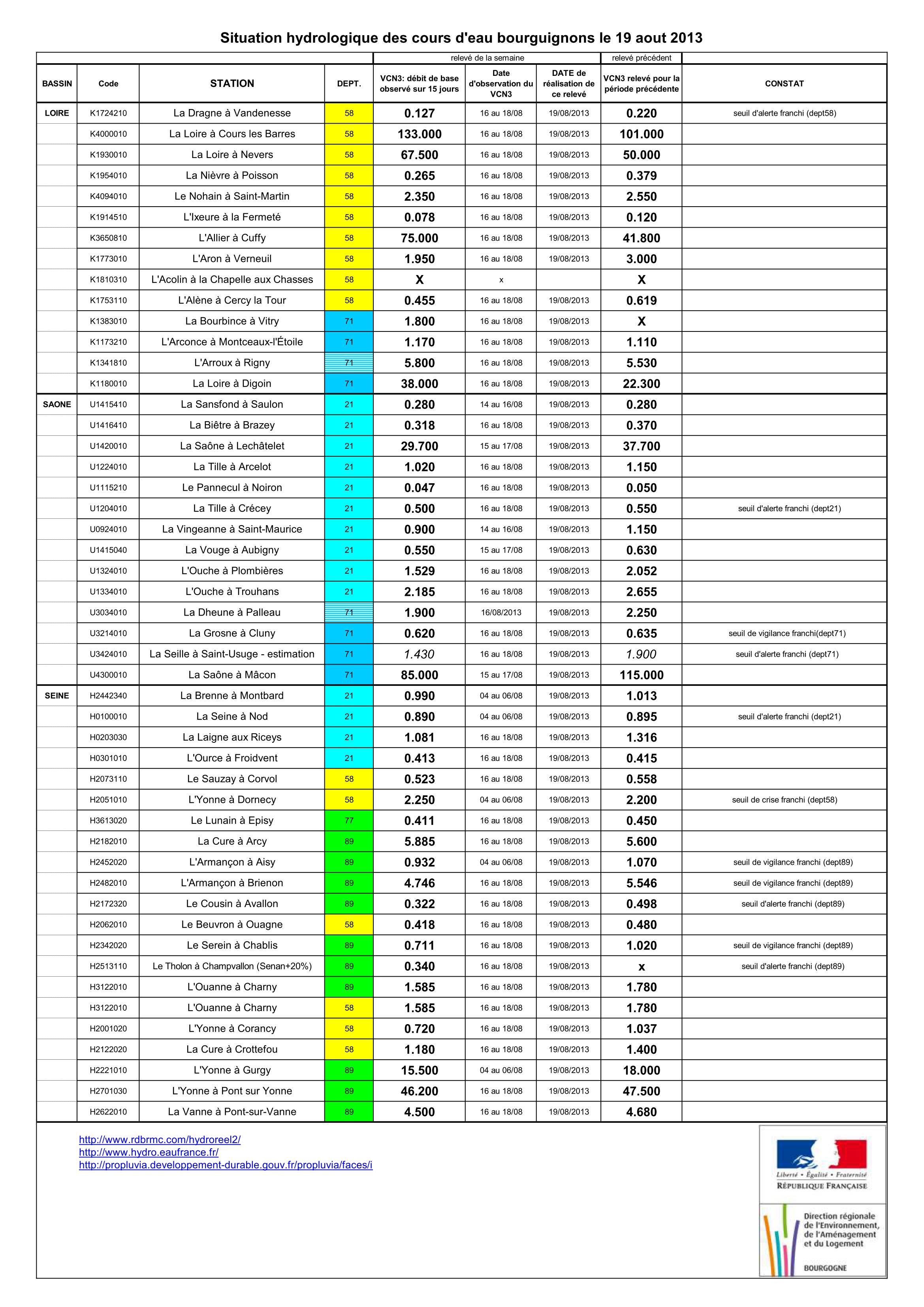 Bulletin Sécheresse BFC/Ouest 19-08-2013