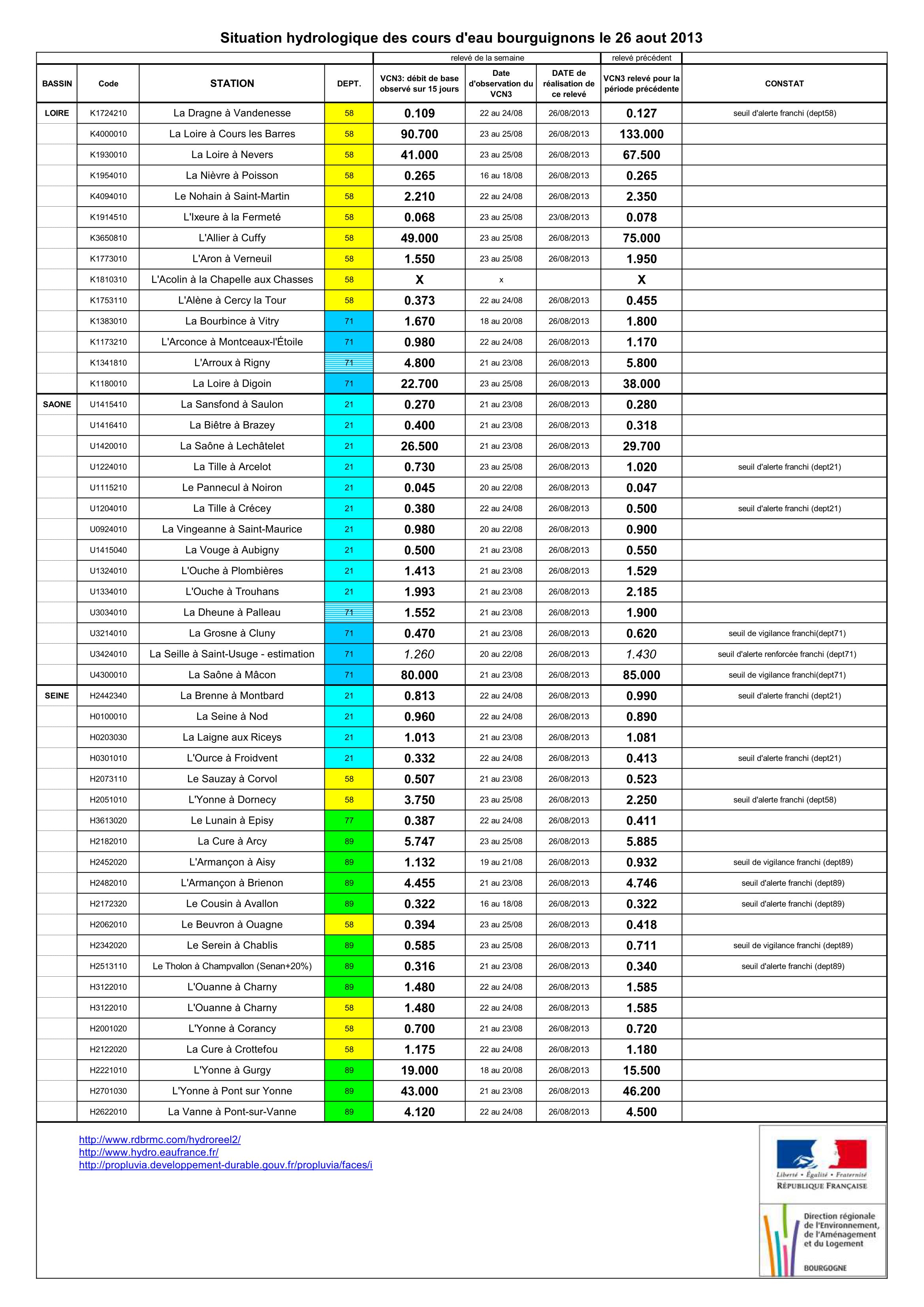Bulletin Sécheresse BFC/Ouest 26-08-2013