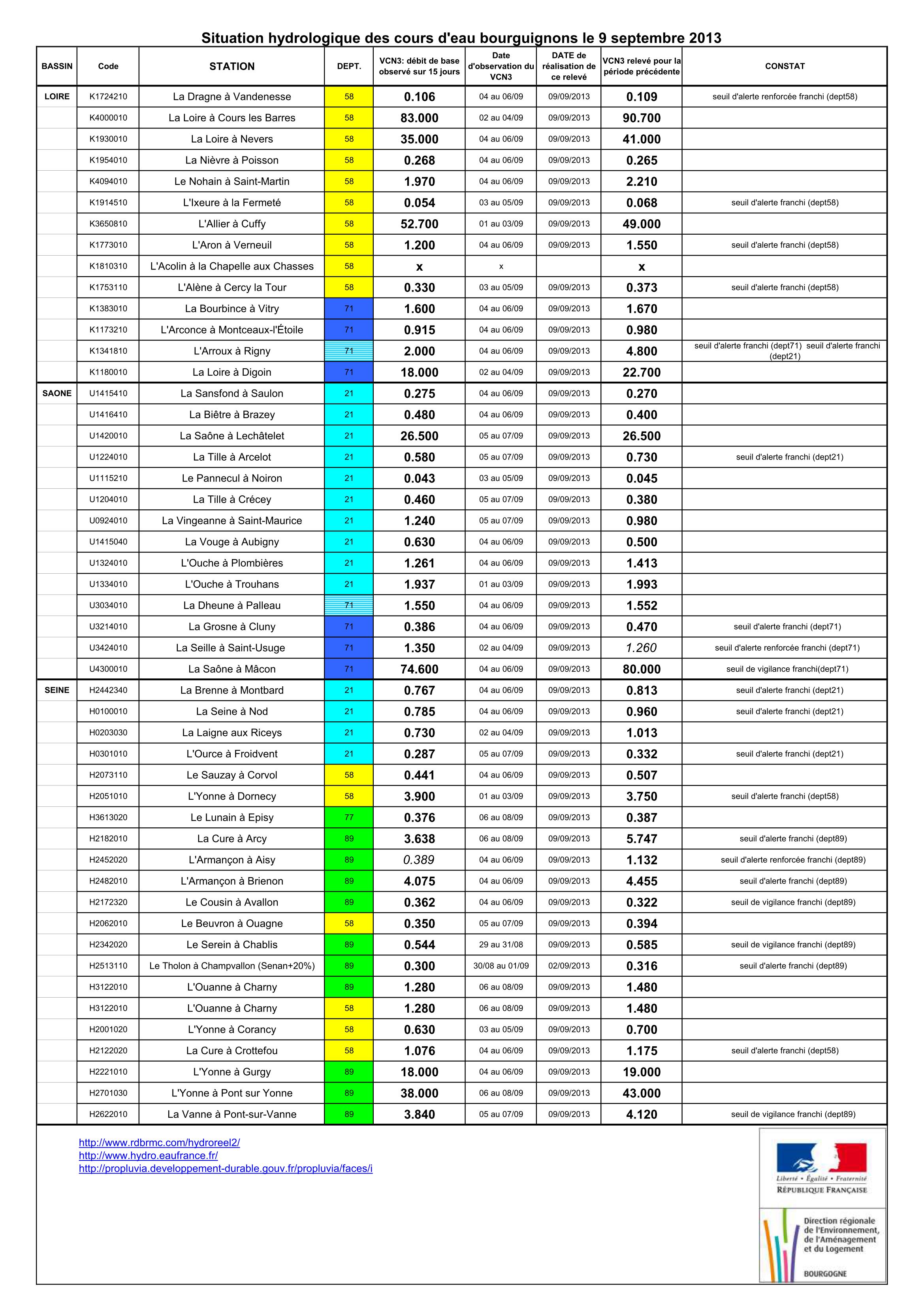 Bulletin Sécheresse BFC/Ouest 09-09-2013