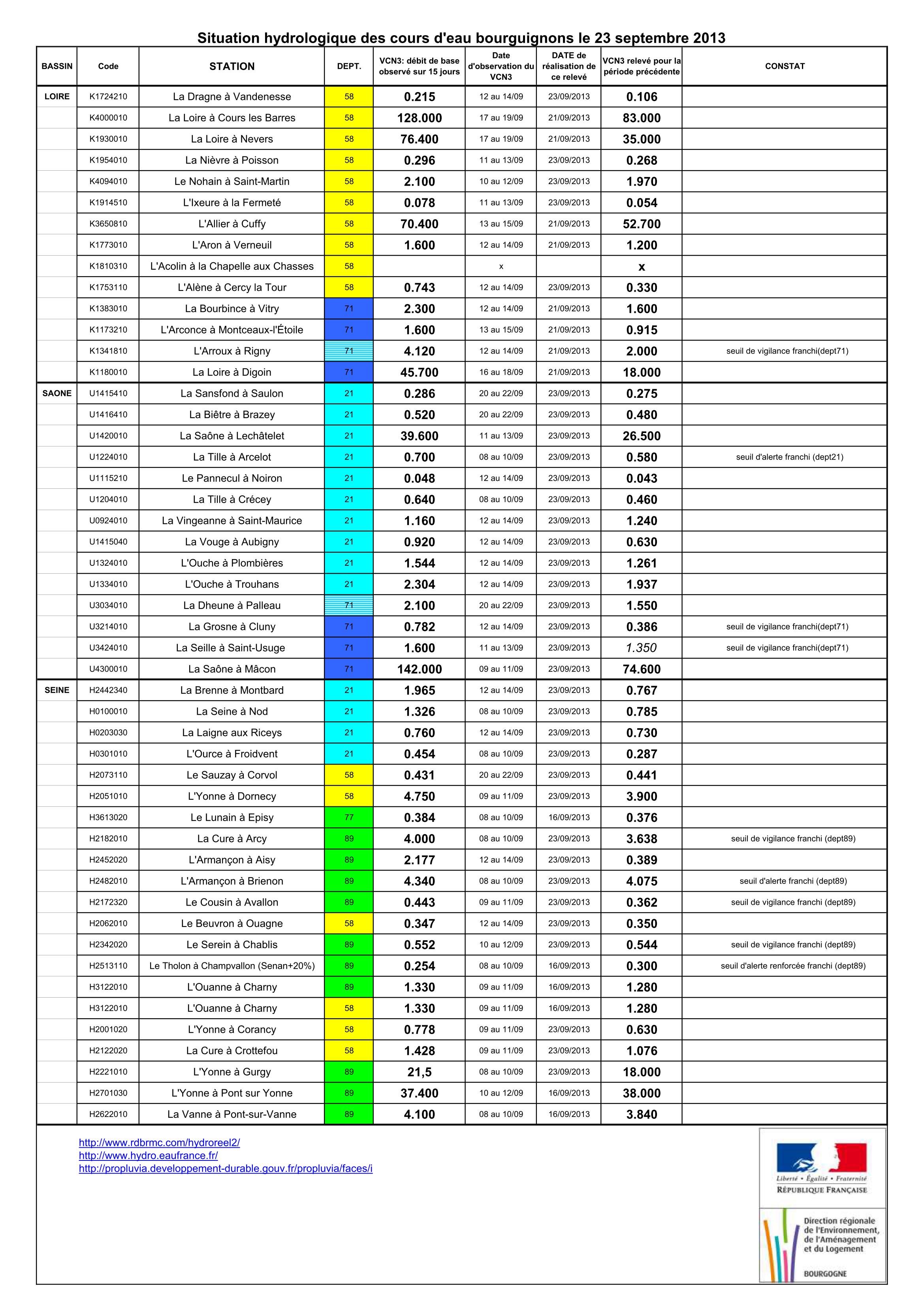 Bulletin Sécheresse BFC/Ouest 23-09-2013