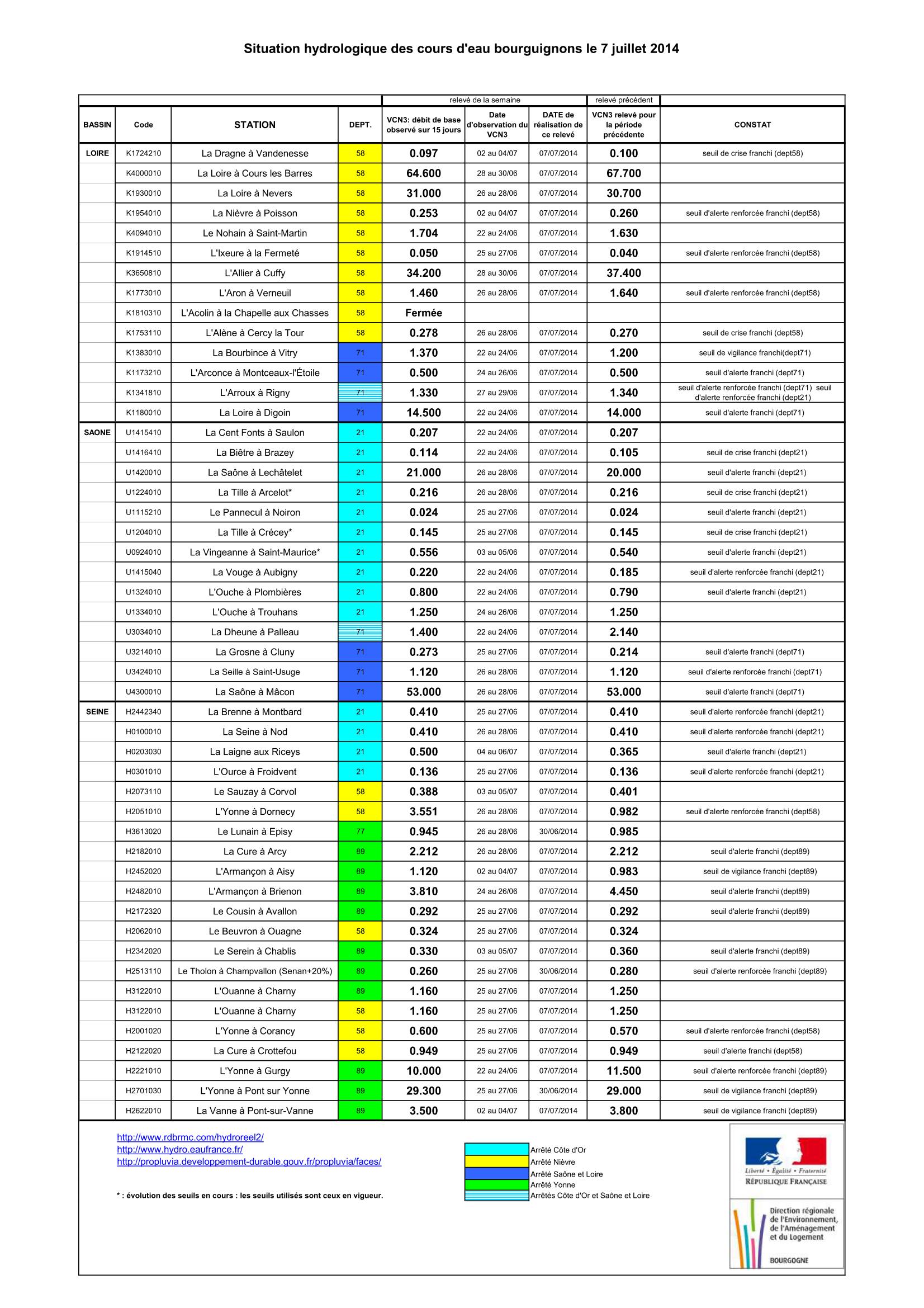 Bulletin Sécheresse BFC/Ouest 07-07-2014
