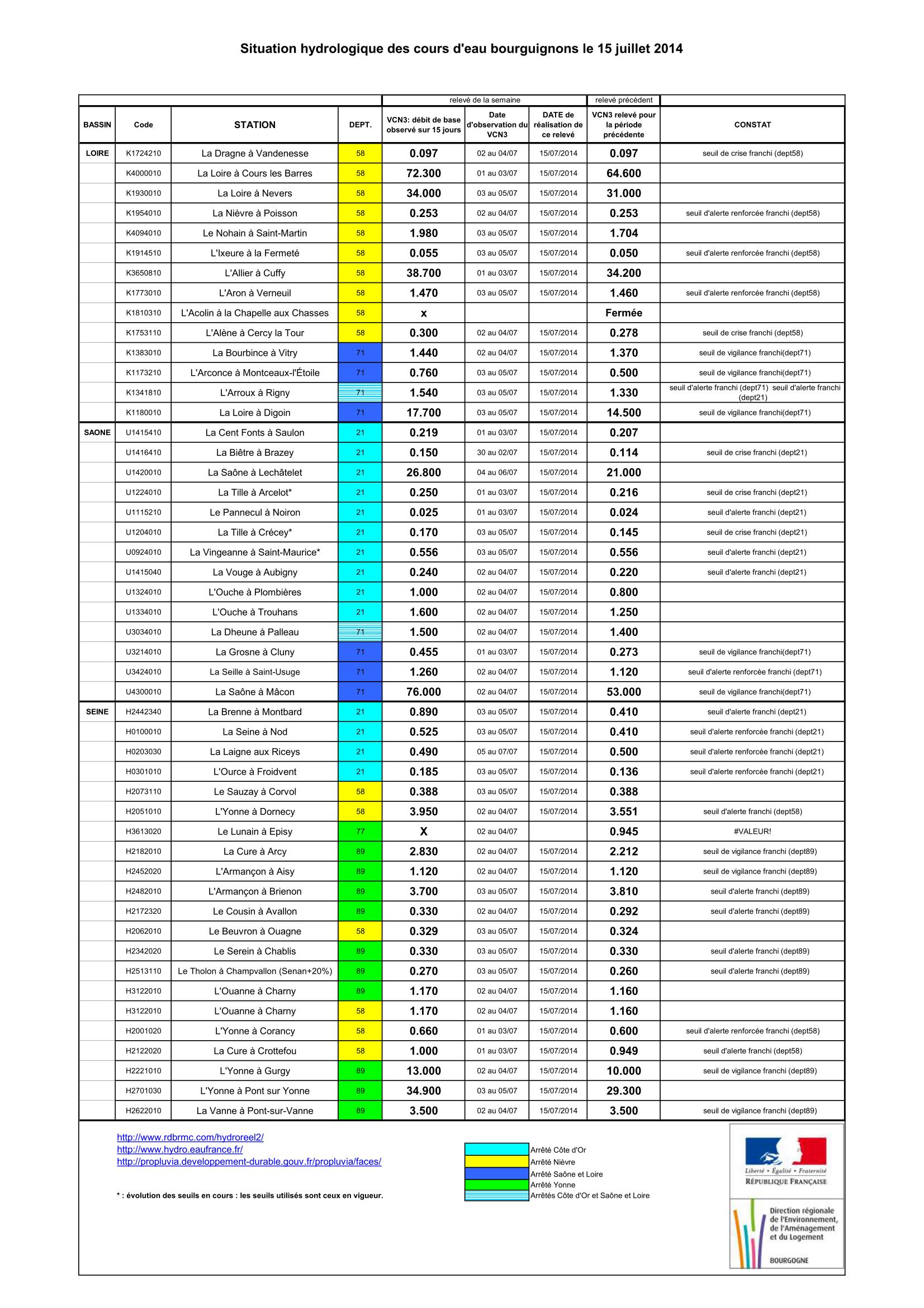 Bulletin Sécheresse BFC/Ouest 15-07-2014