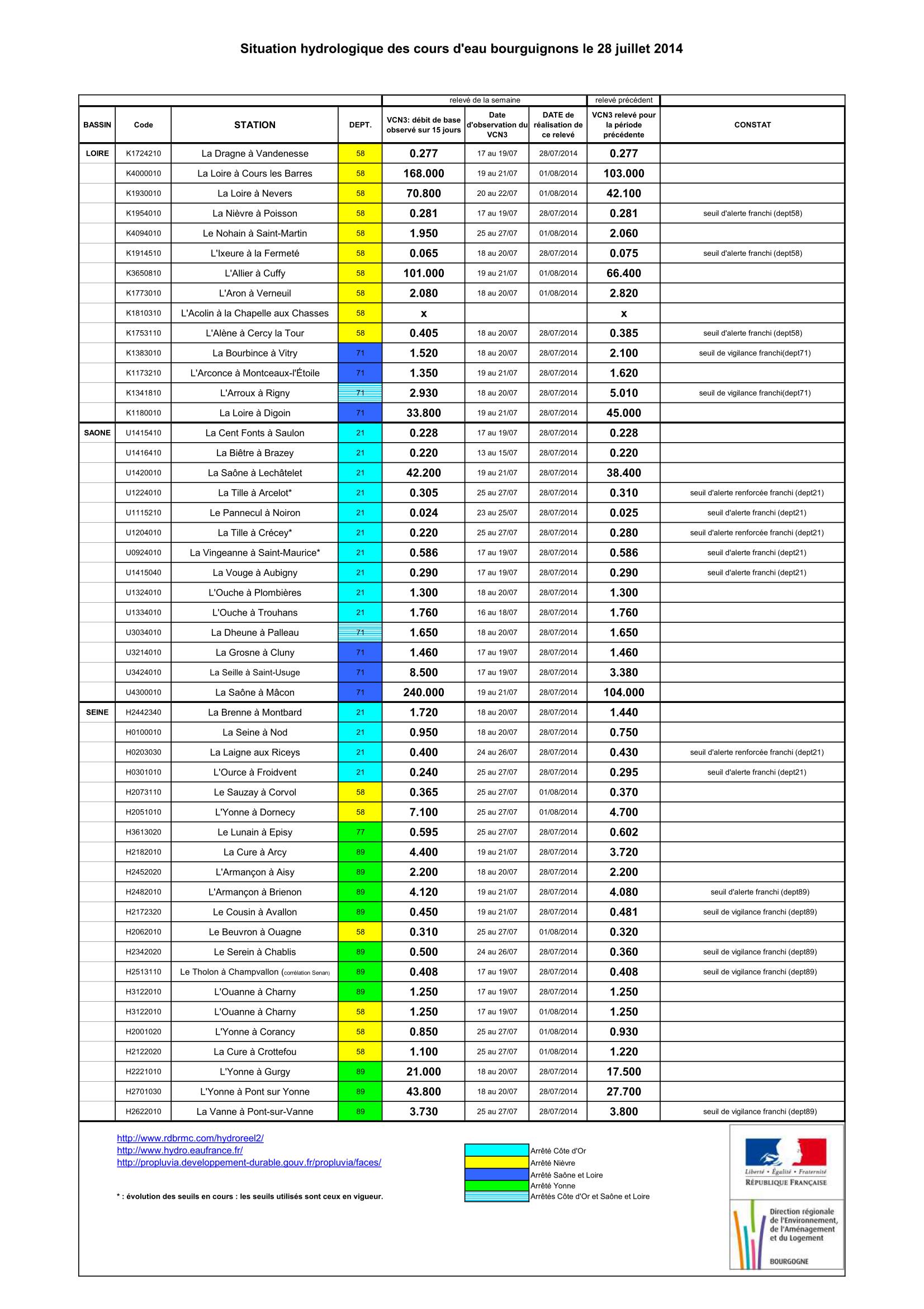 Bulletin Sécheresse BFC/Ouest 28-07-2014