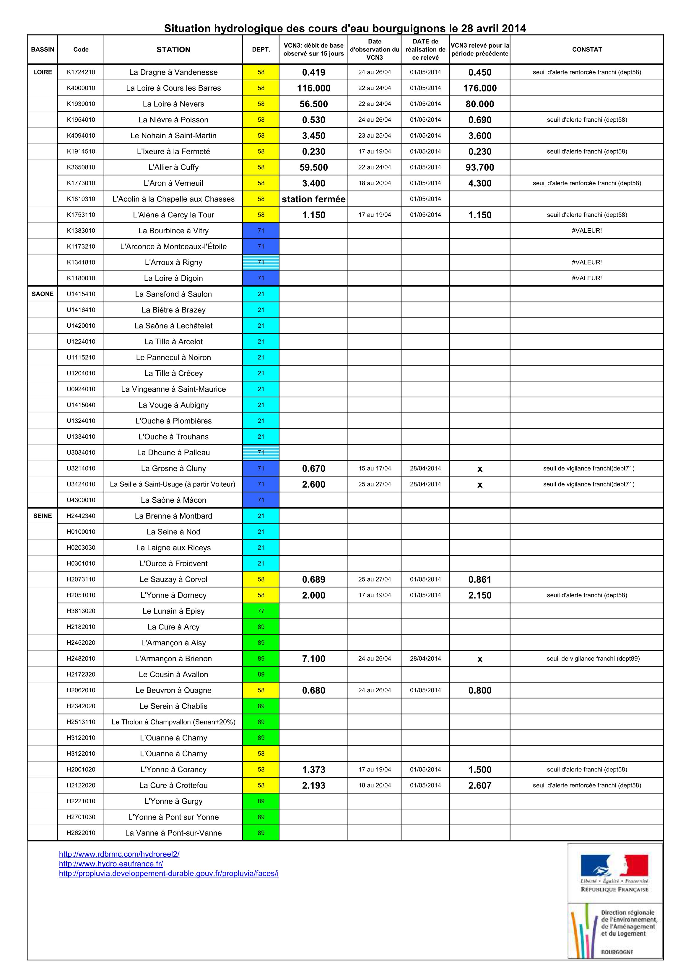 Bulletin Sécheresse BFC/Ouest 28-04-2014