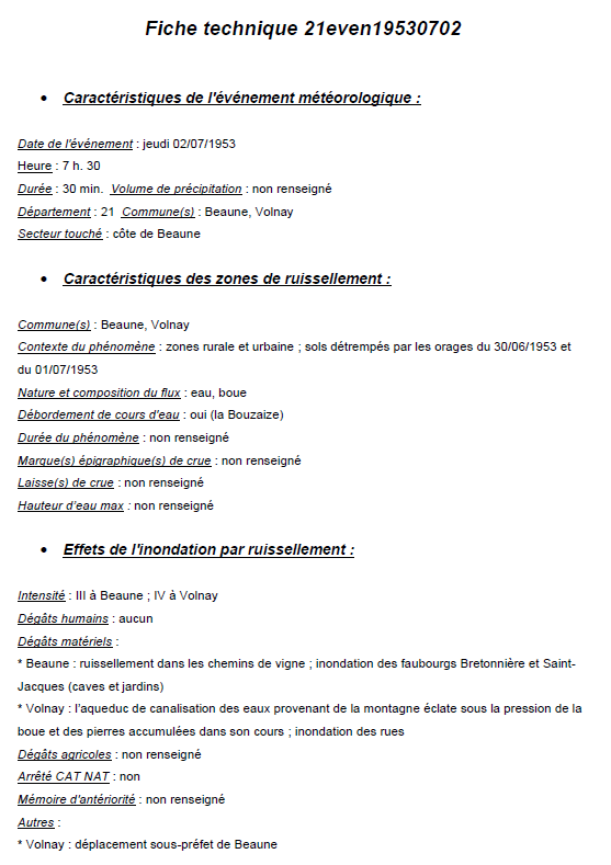 Etude historique des ruissellements
