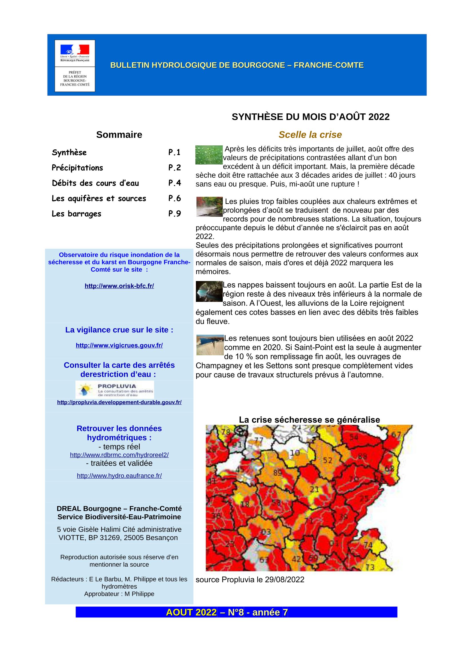 Bulletin hydrologique août 2022