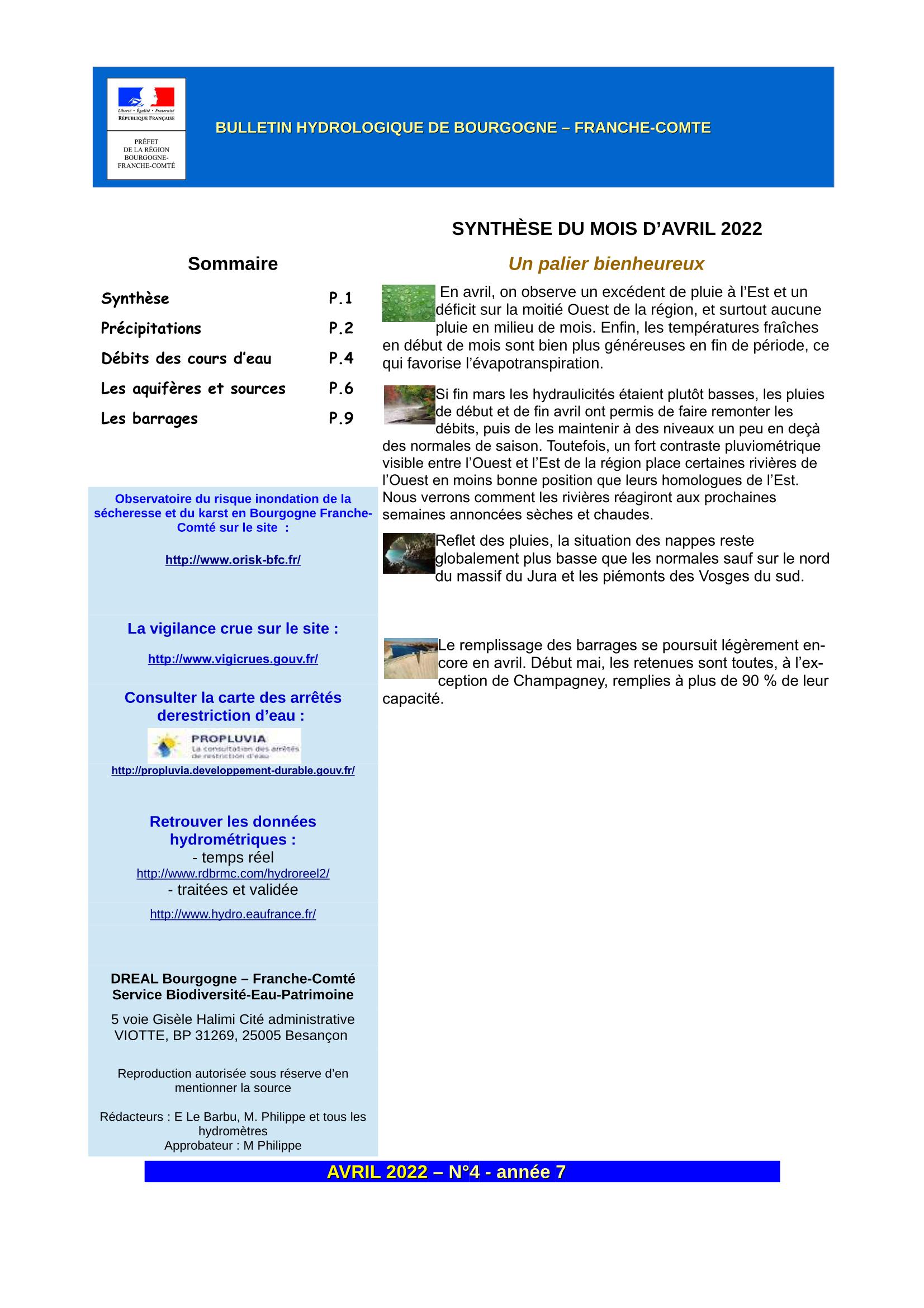 Bulletin hydrologique avril 2022