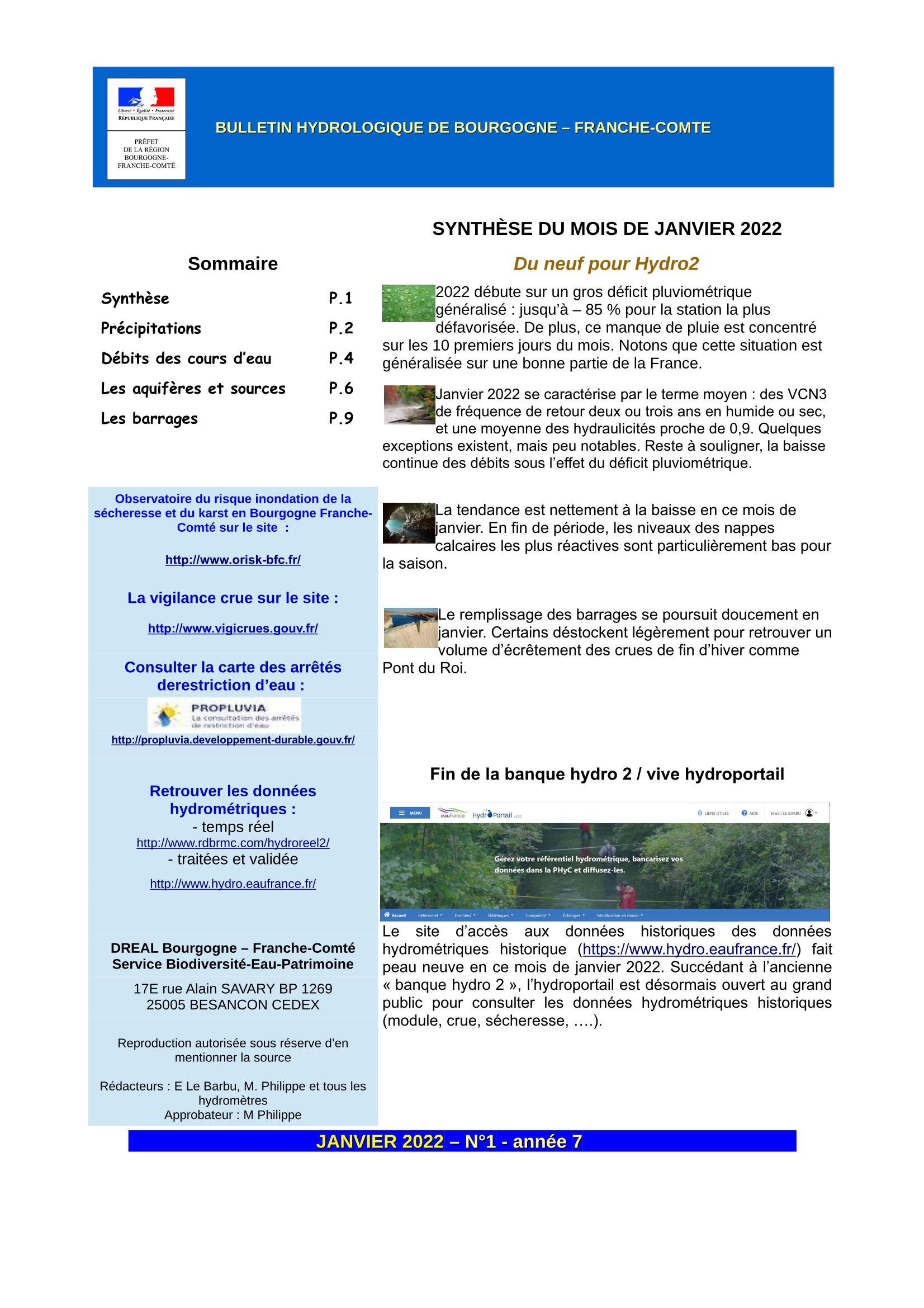 Bulletin hydrologique janvier 2022