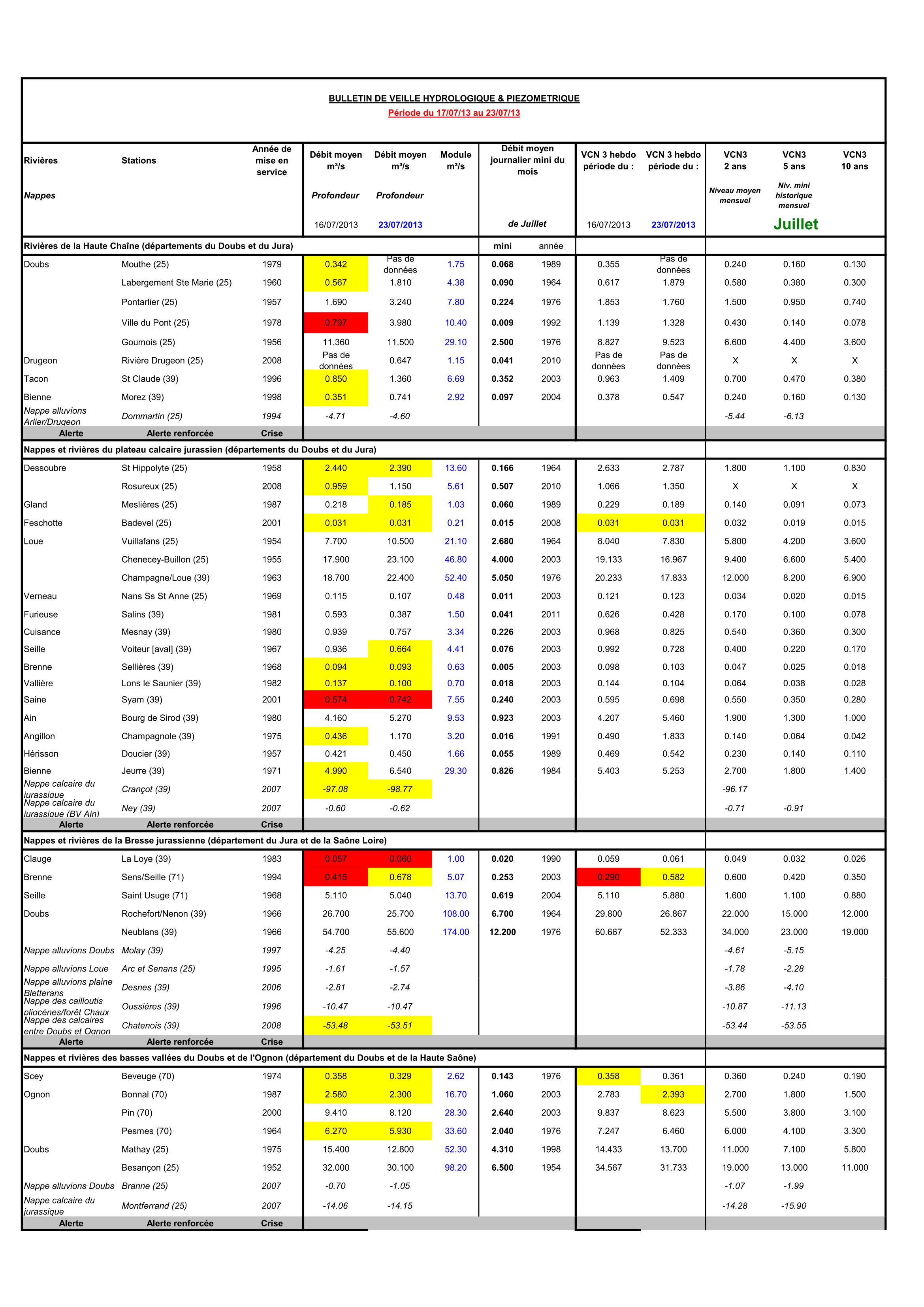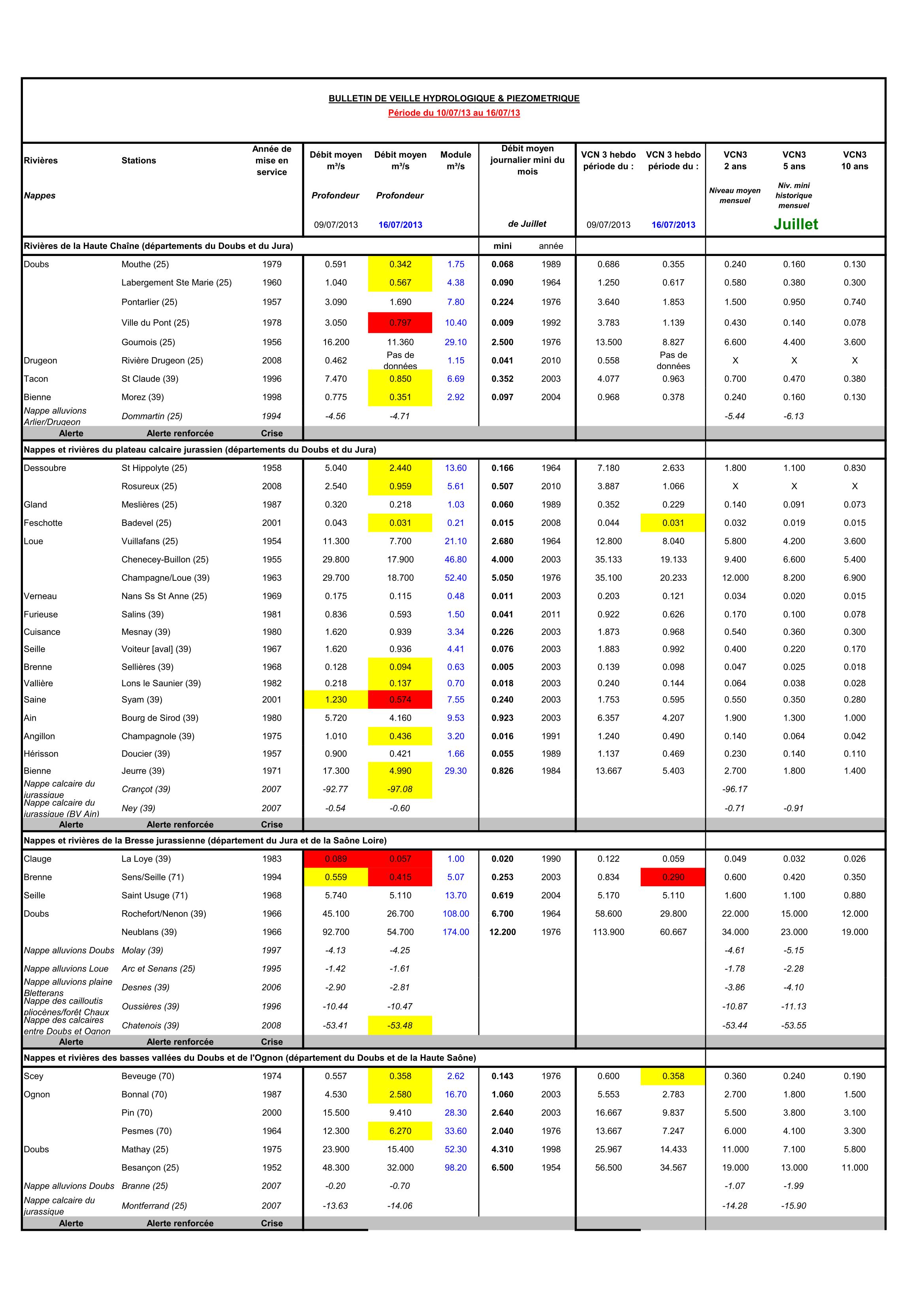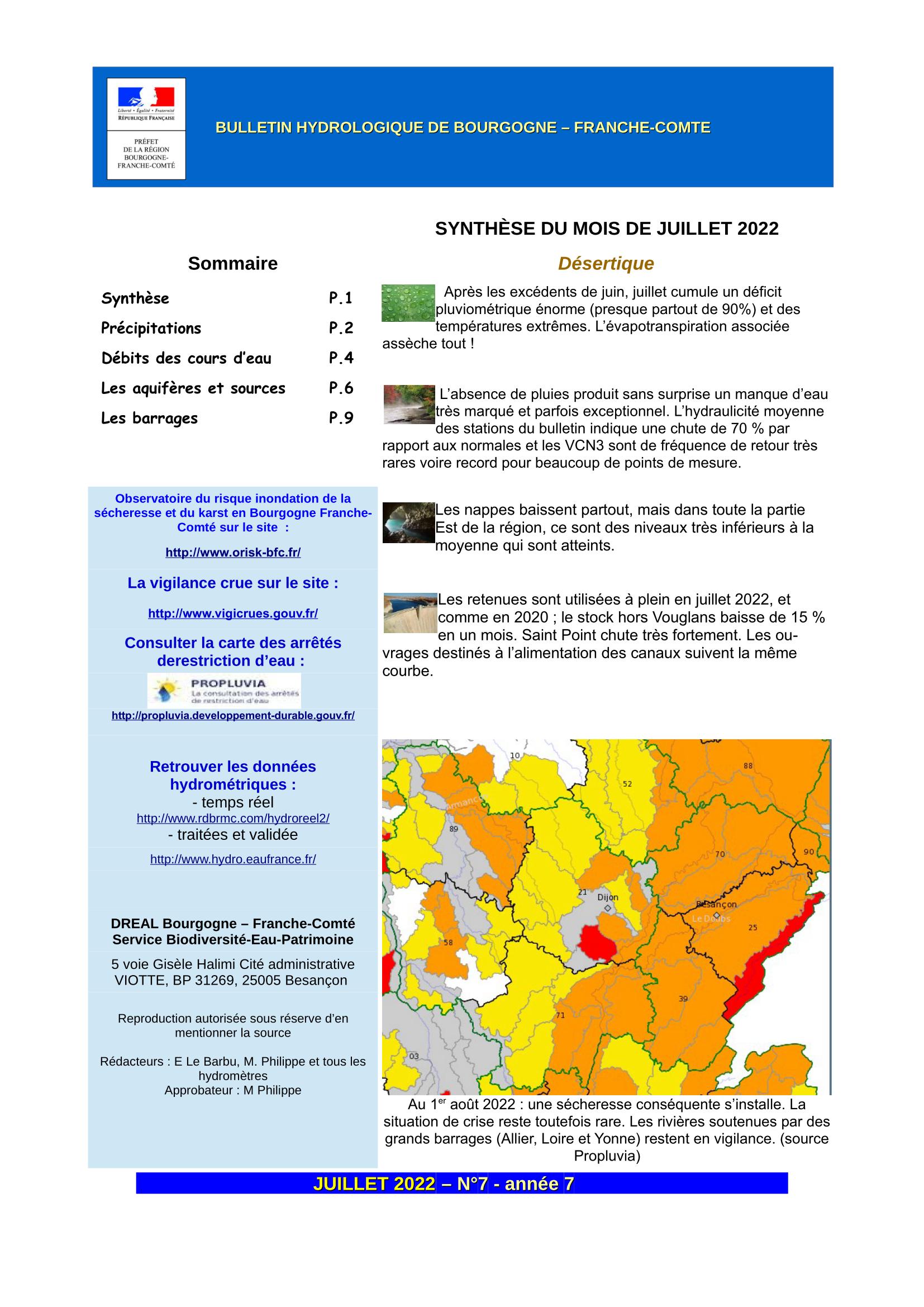 Bulletin hydrologique juillet 2022